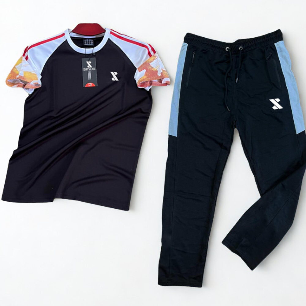 Ignite your workout routine with this high-contrast performance set, featuring a sleek Onyx Black T-shirt with dynamic graphic sleeves and matching paneled training trousers. This set is precision-engineered using specialized technical textiles to ensure you stay cool, dry, and aesthetically sharp in any training environment.