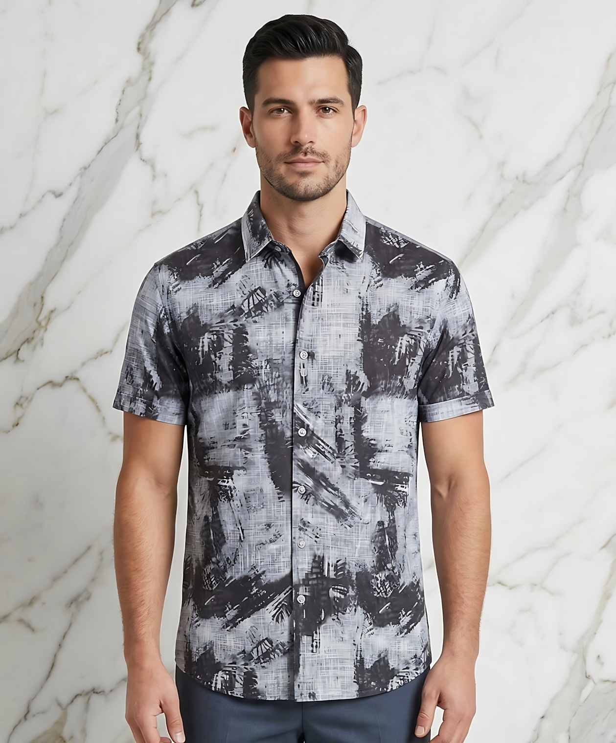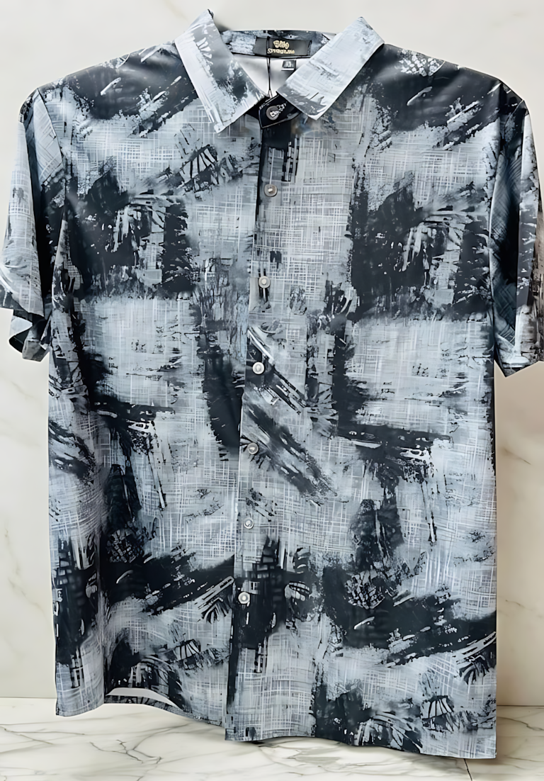 Men’s Geometric Pattern Casual Shirt - Black X Grey