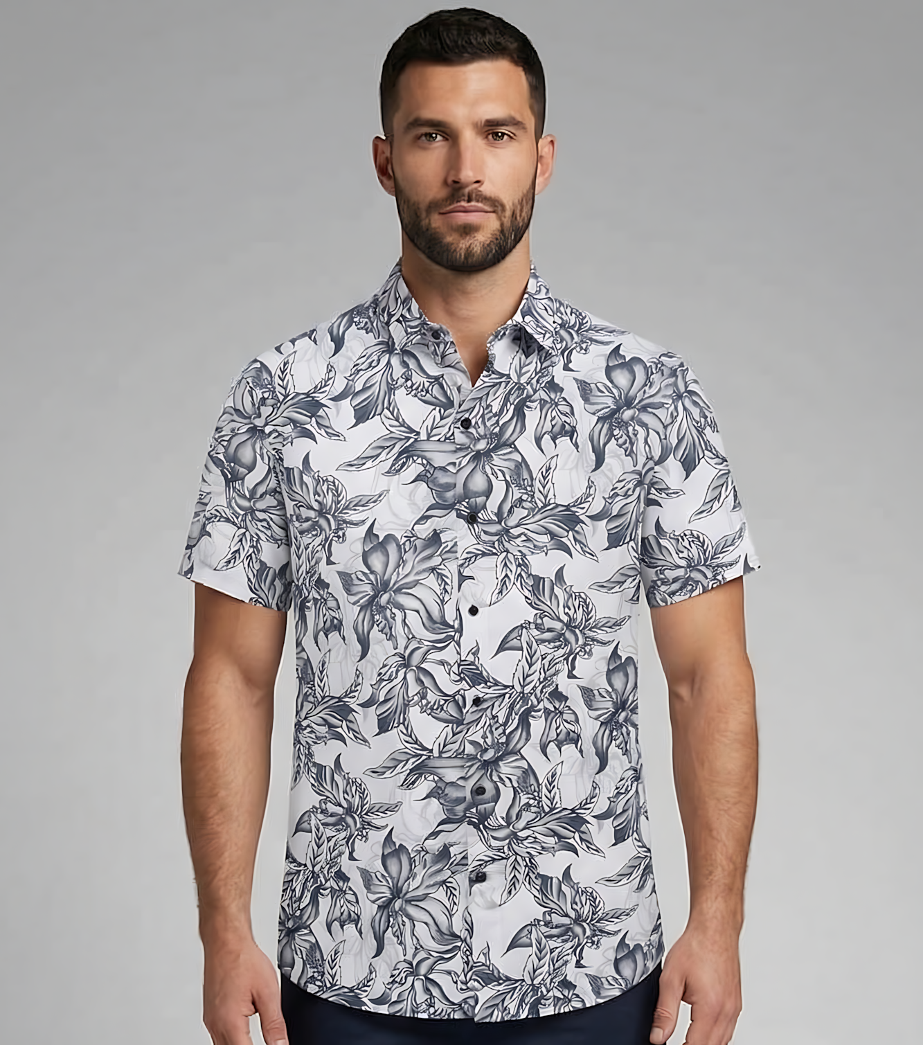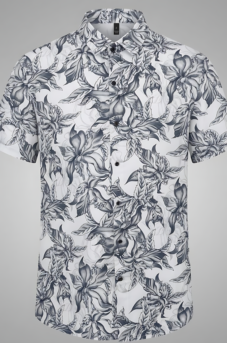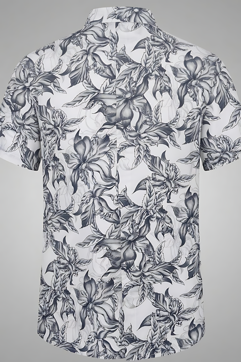 Upgrade your style with this elegant floral printed shirt, designed to bring a fresh and artistic touch to your everyday look. Its monochrome palette and detailed pattern make it a perfect blend of sophistication and casual charm.