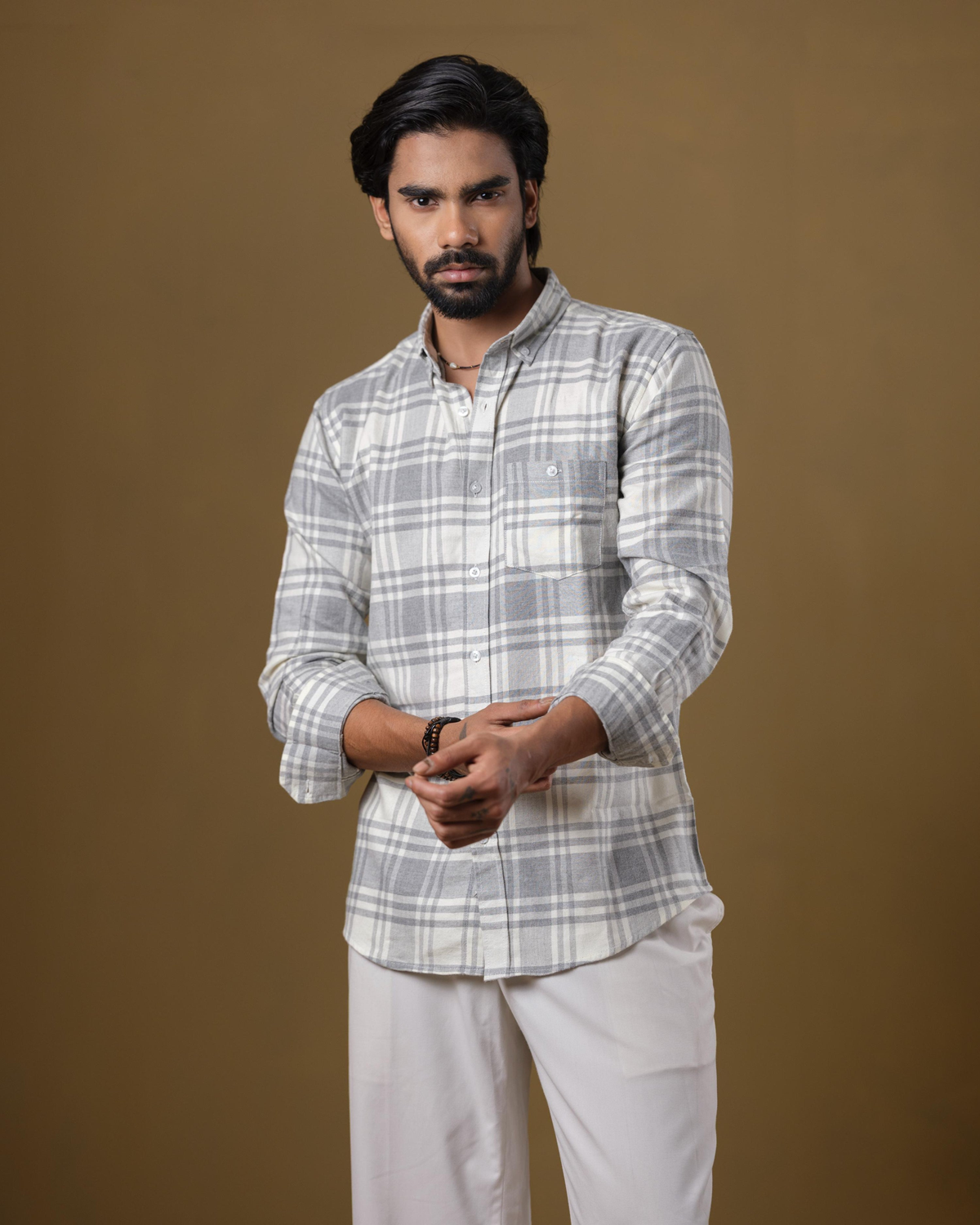 Timeless, versatile, and effortlessly refined — the Men’s Grey & Off-White Plaid Shirt is designed for clean everyday styling.