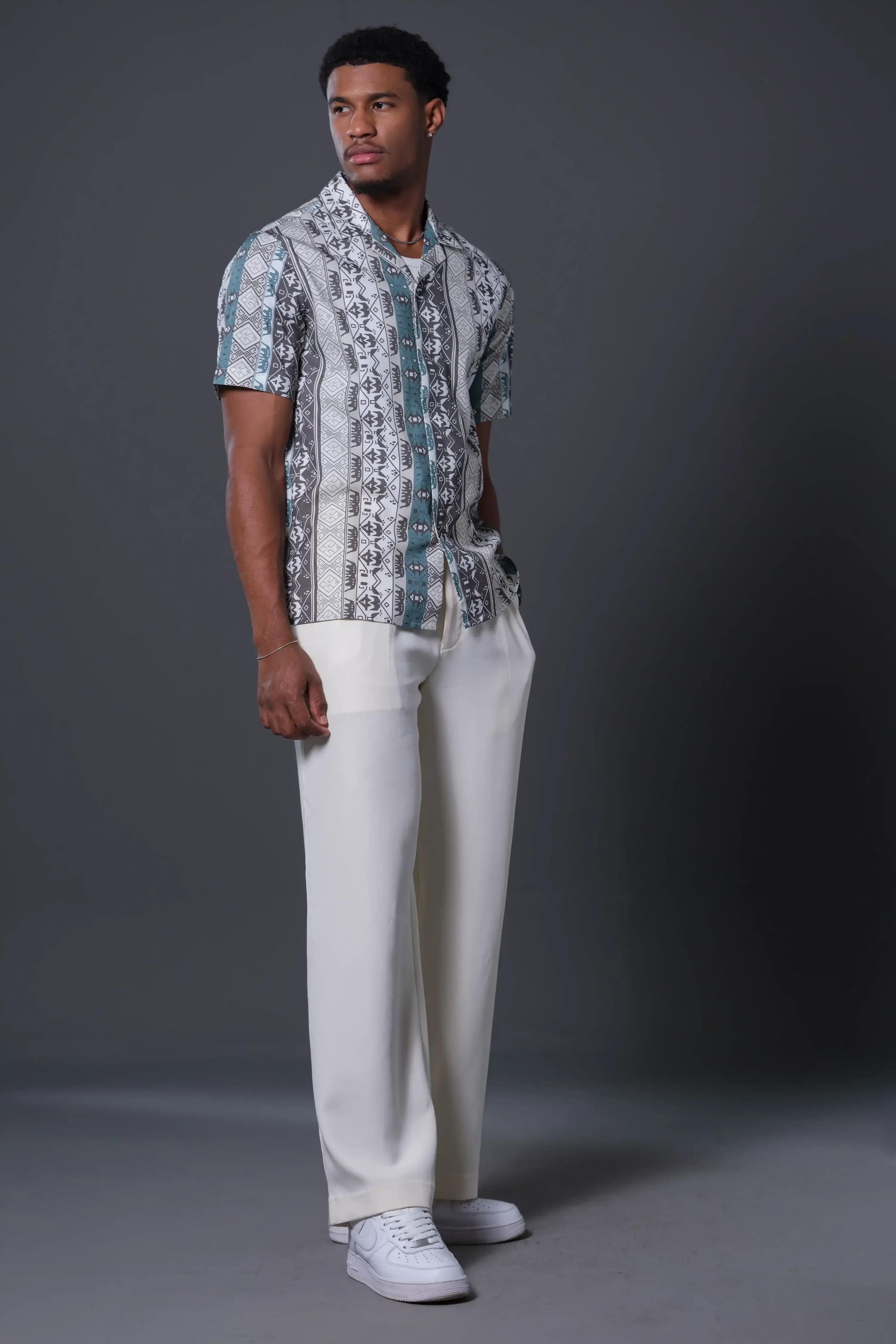 Short sleeves ideal for warmer weather, offering a breezy, laid-back look.