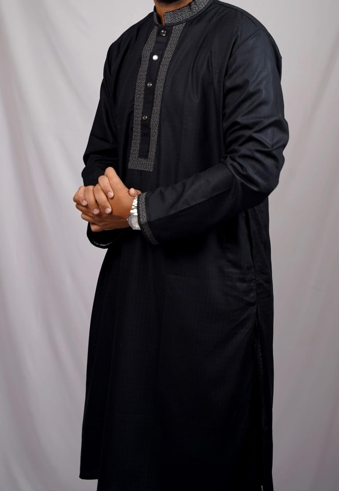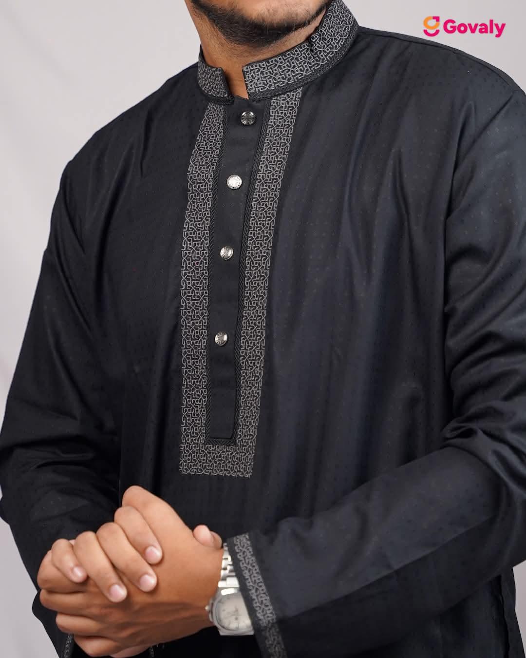 Men's Premium Charcoal Onyx Panjabi - Textured Midnight