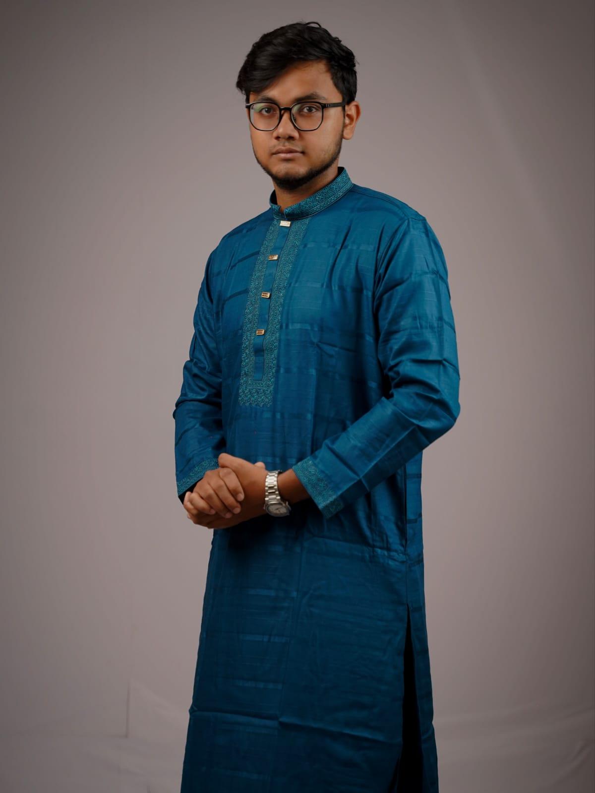 Men's Premium Midnight Azure Panjabi - Ocean Stripe