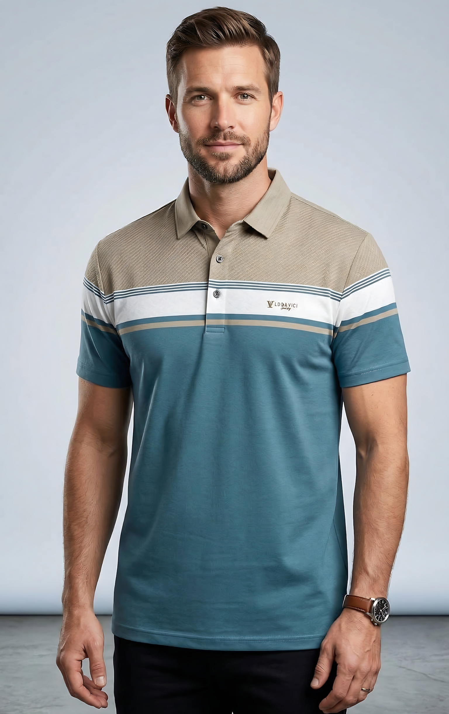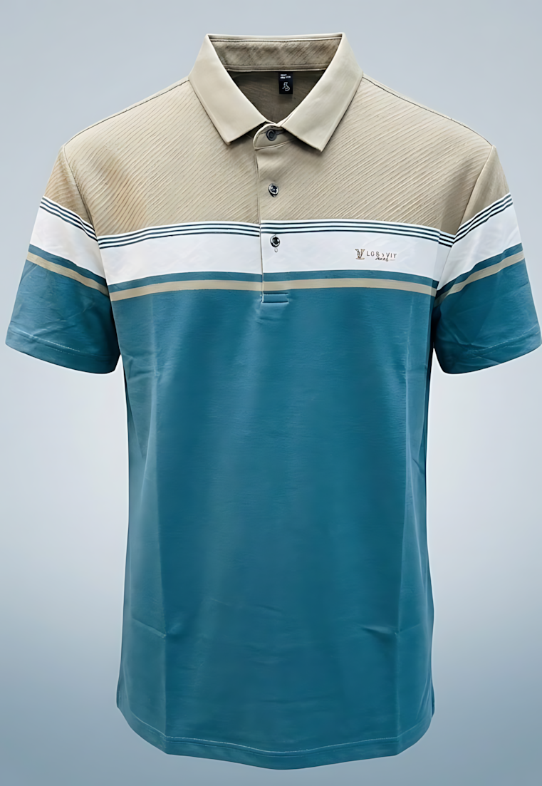 Men’s Regular Fit Polo Shirt - Beige & Teal Blue