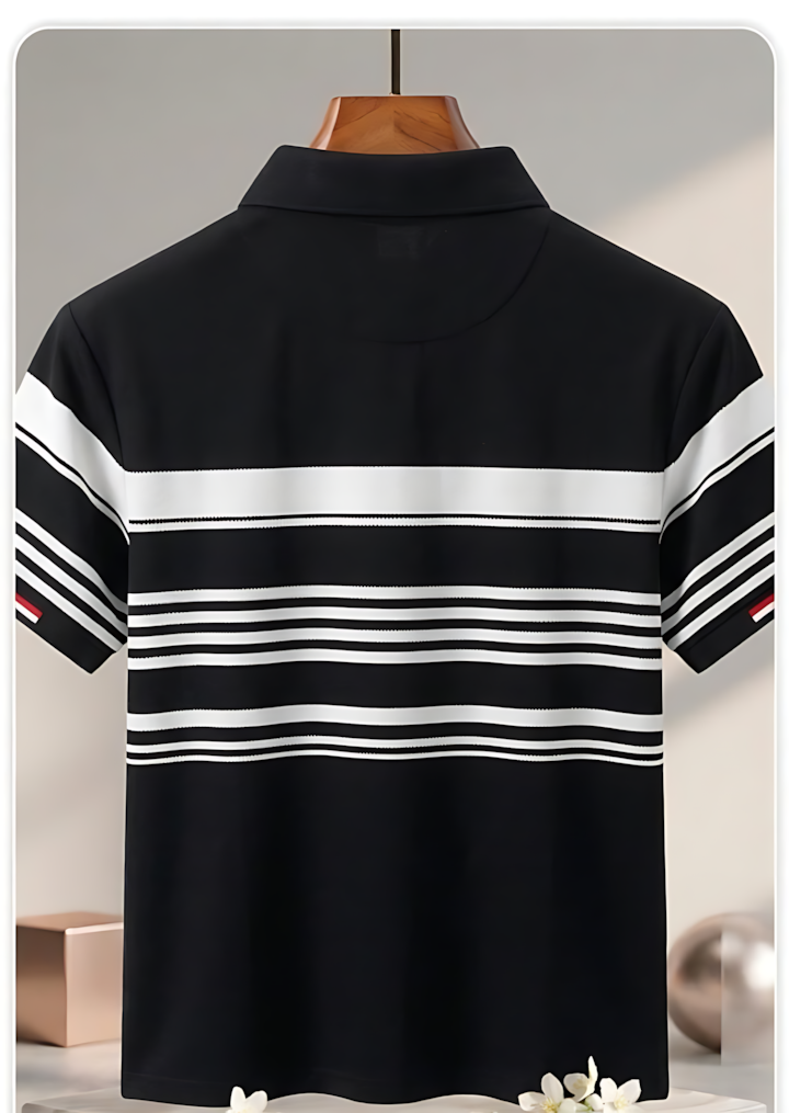 Upgrade your everyday style with this timeless black and white striped polo shirt, designed for both comfort and elegance. Its premium fabric and clean detailing make it perfect for any occasion.
