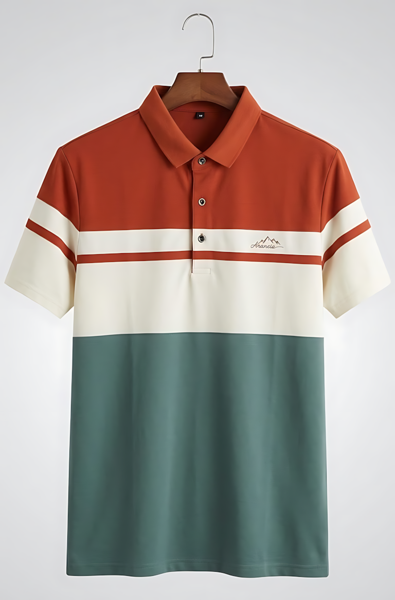 Men’s Regular Fit Polo Shirt - Burnt Orange X Off-White X Dusty Green