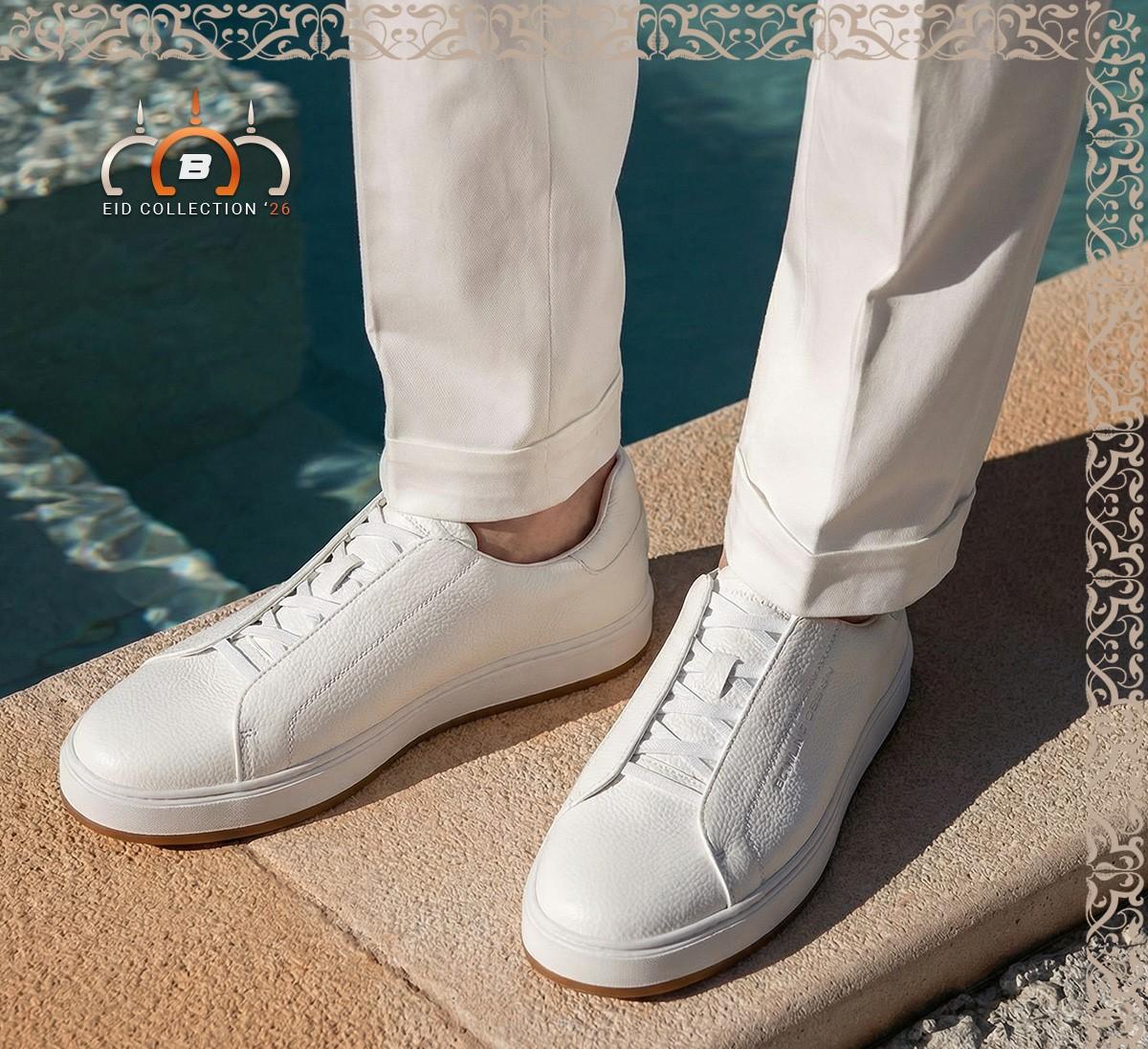 Tonal Lace-Up System: Equipped with flat white cotton laces that blend seamlessly into the pebbled leather for a "classy" and uncluttered appearance.