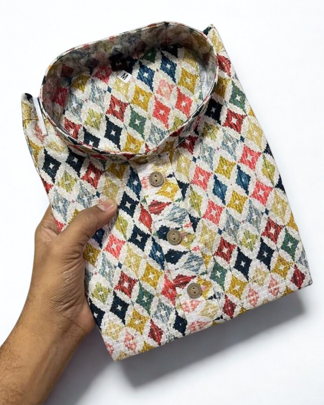 Classic Detailing: Designed with full sleeves, a sophisticated mandarin collar, and a convenient button closure for a polished finish.