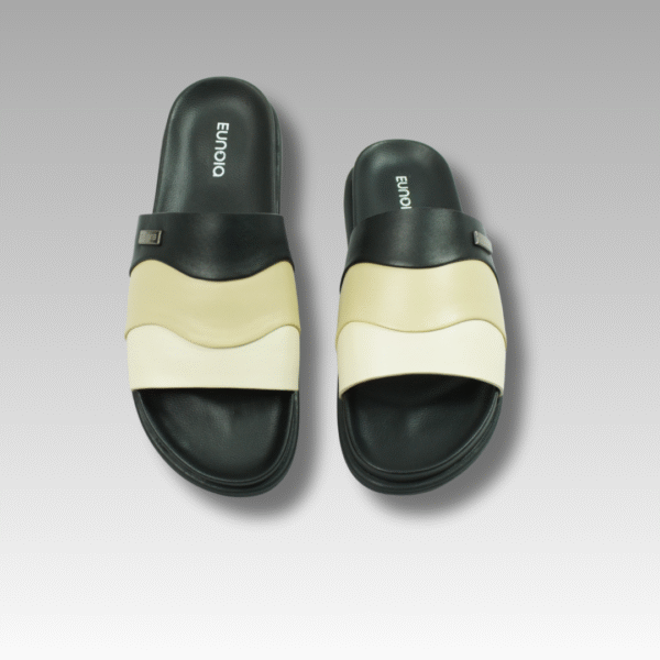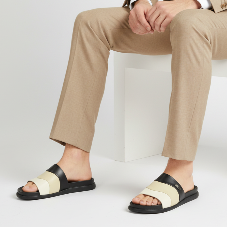 Artisan Leather Upper: Featuring a striking tri-tone color-block design, these slides are crafted from high-quality leather, ensuring a smooth, durable, and refined finish.