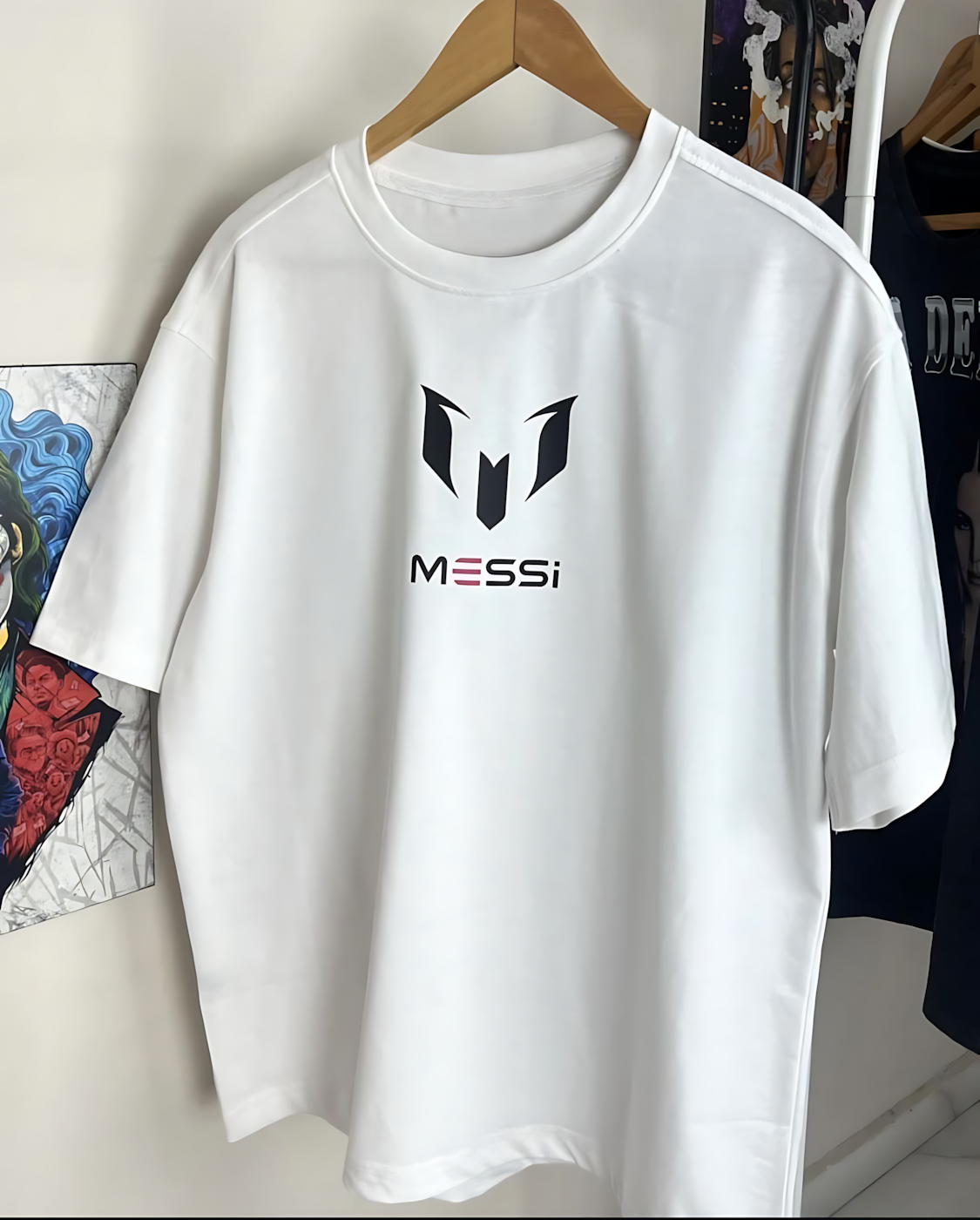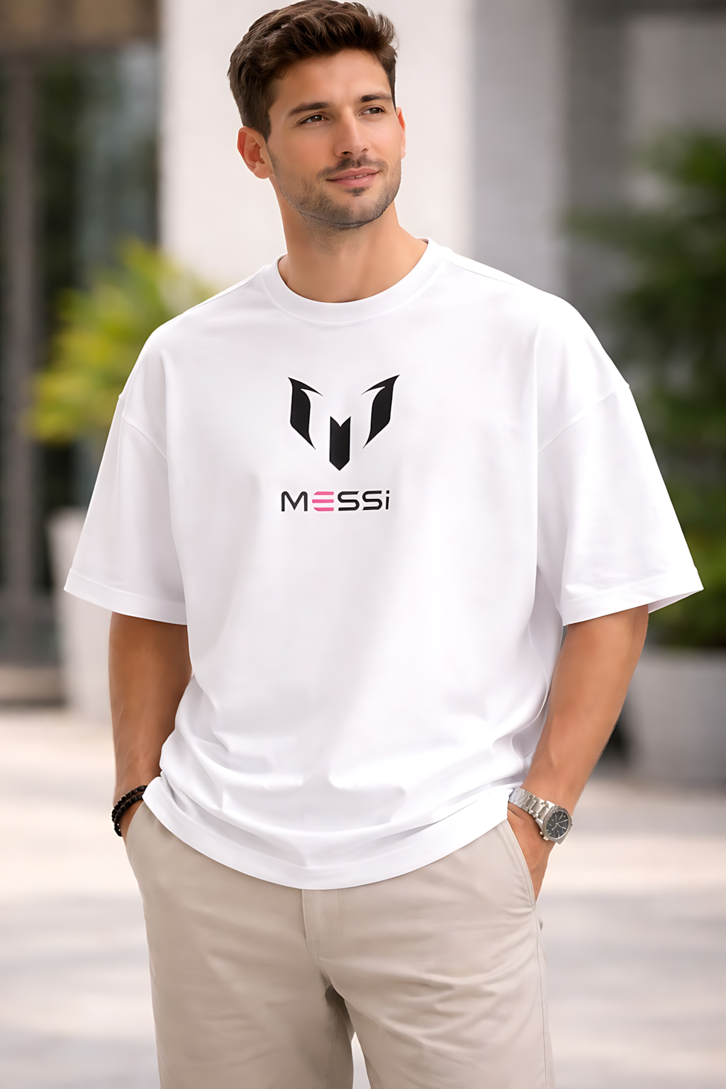 Stay cool and stylish with this Messi Logo White Drop Shoulder T-Shirt. Made from high-quality cotton, this oversized fit tee offers maximum comfort and a modern streetwear look. The minimal Messi logo design makes it perfect for casual wear, summer outfits, and football fans. Durable print ensures long-lasting use without fading. Ideal for daily wear, hangouts, and trendy fashion.