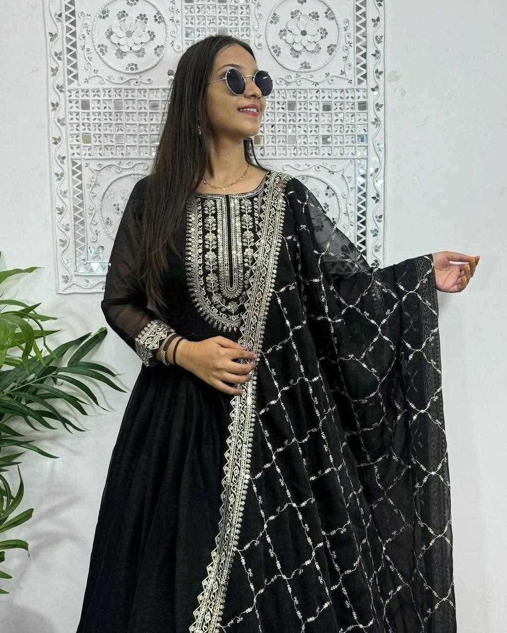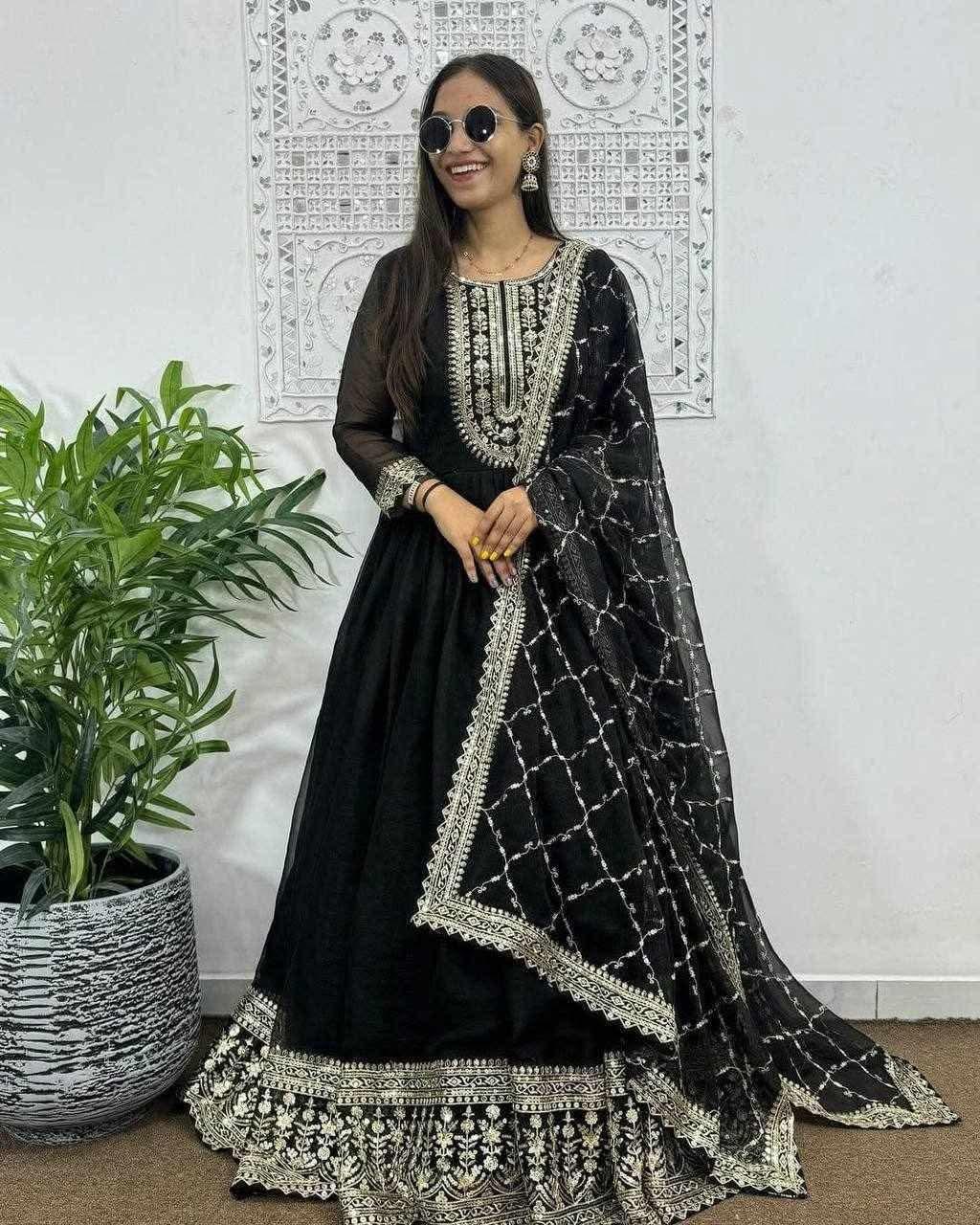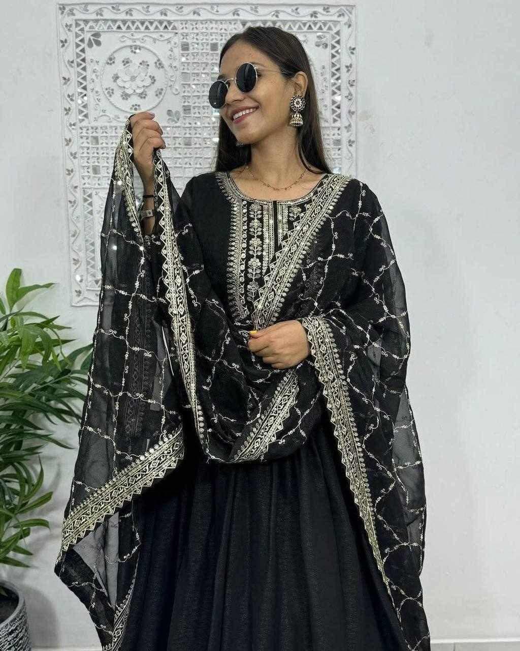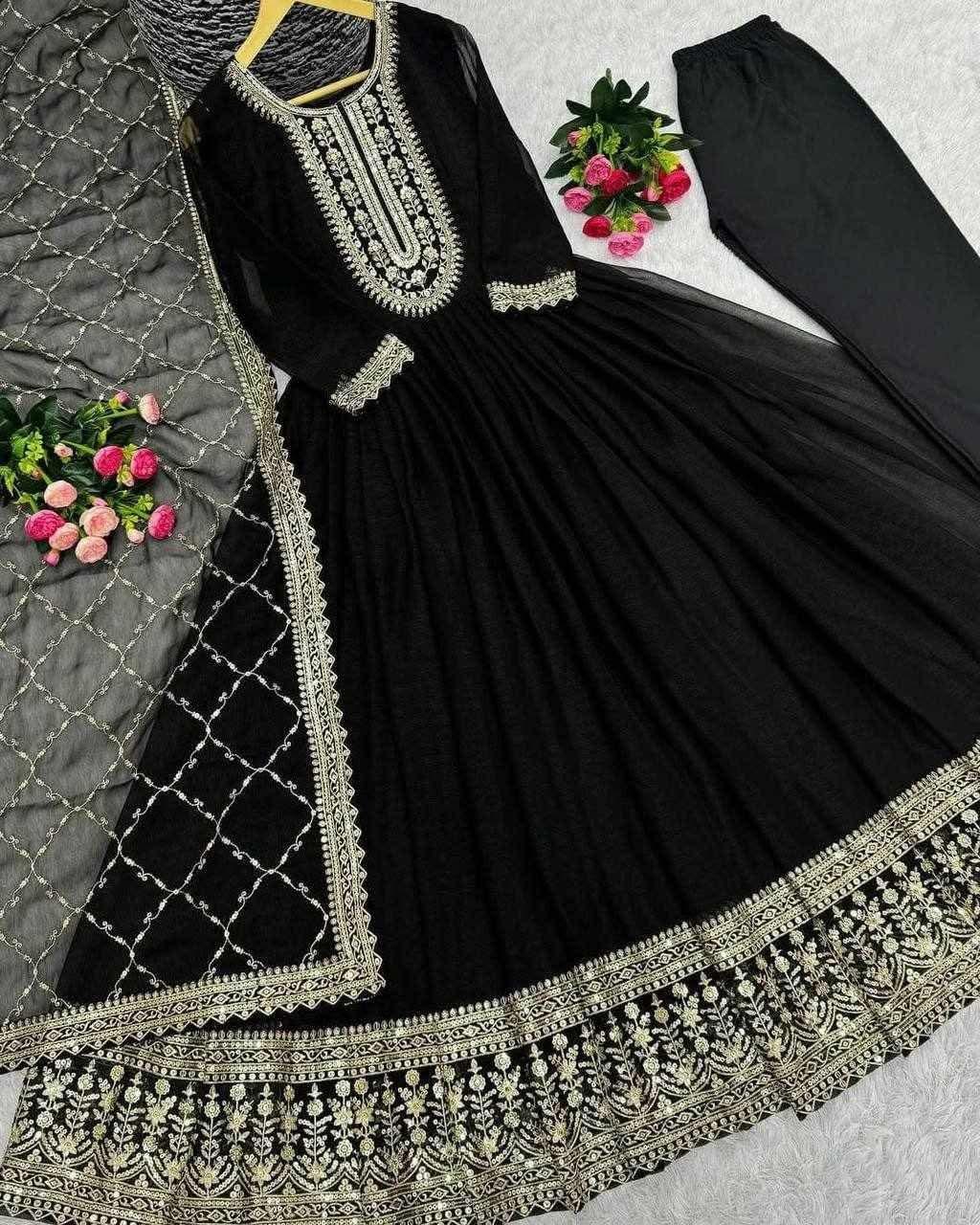 Midnight Glamour: Shimmer Silk Embroidered Gown Set