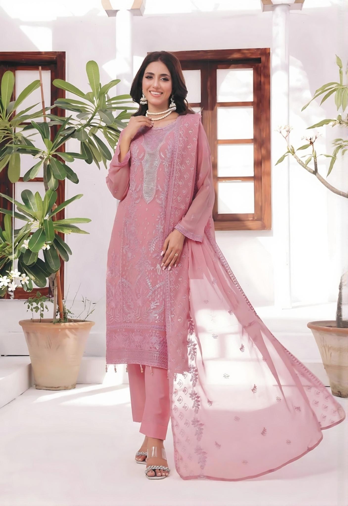 Grace meets elegance in this beautifully embroidered soft pink outfit, designed to add a touch of sophistication to your everyday and festive look. The delicate detailing and flowy dupatta create a graceful, feminine silhouette.