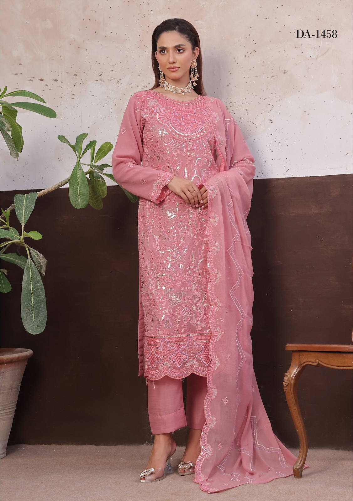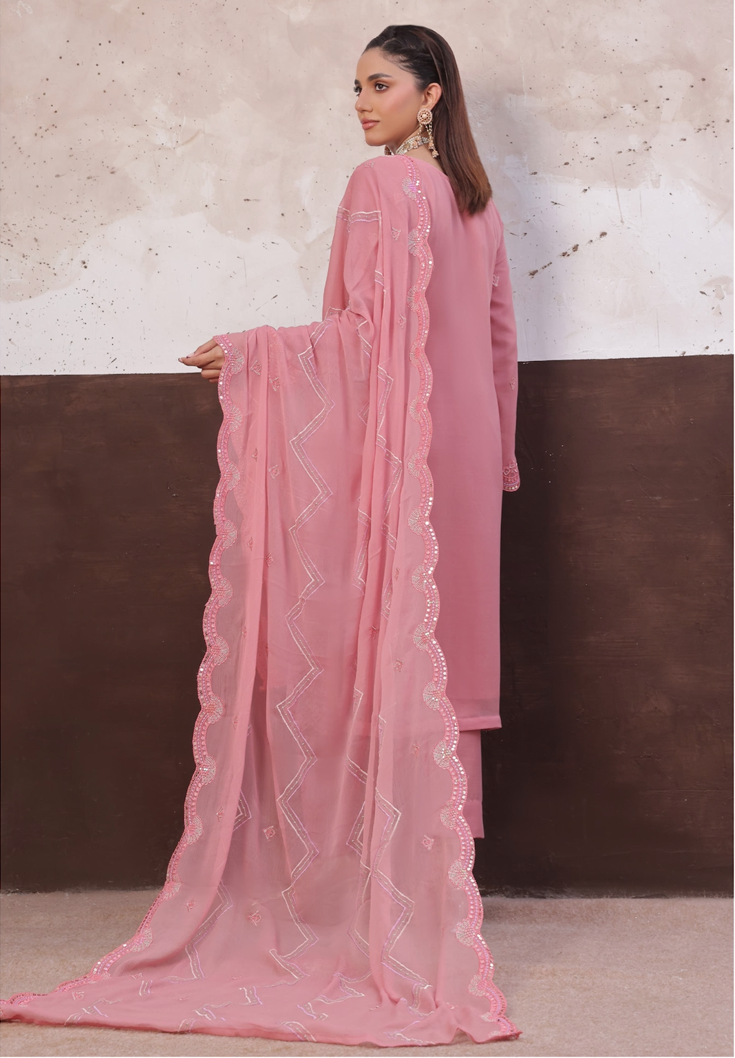 Pakistani Bin Hameed Embroidered Unstitched Chiffon Three Piece - Rose Petal
