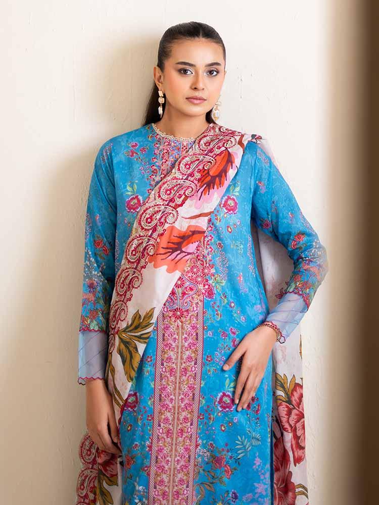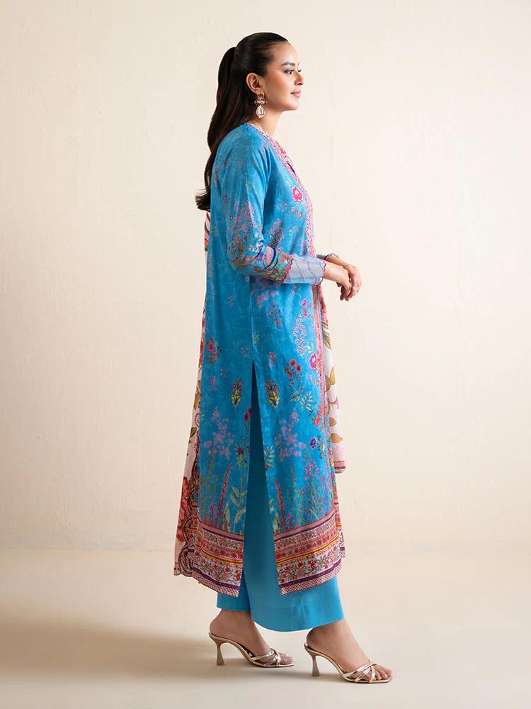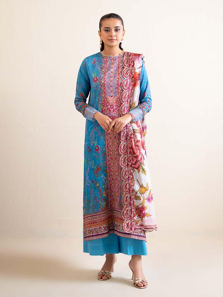 Pakistani Hania by Binaas Unstitched Three Piece - Cerulean Blue