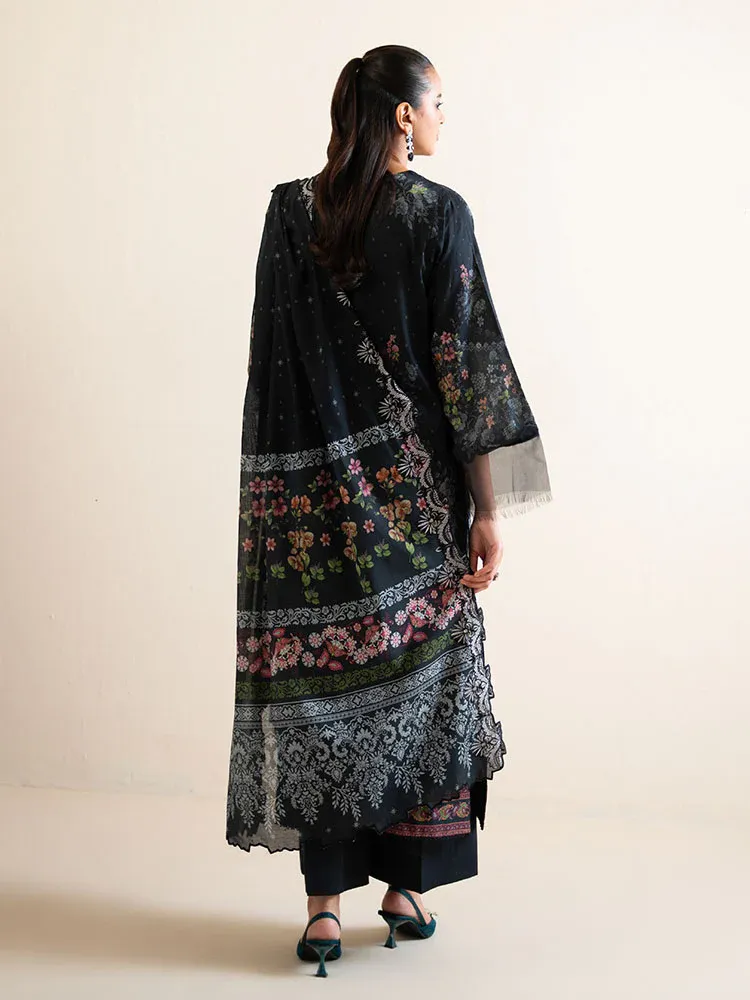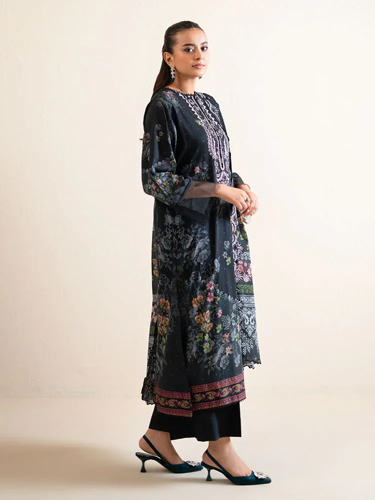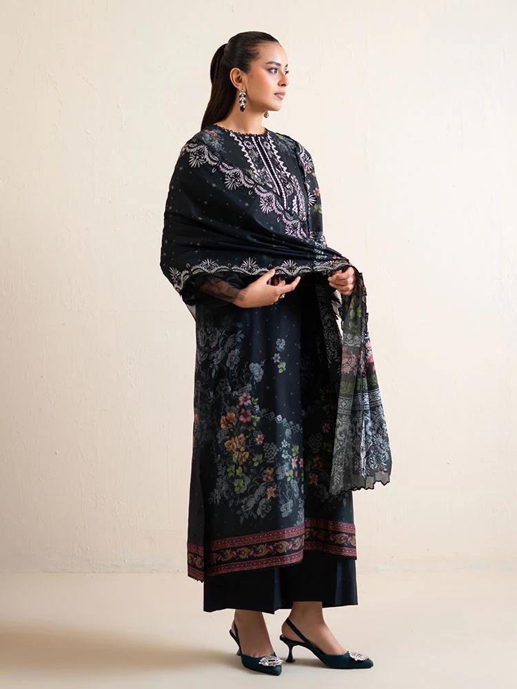 Pakistani Hania by Binaas Unstitched Three Piece - Ebony Black