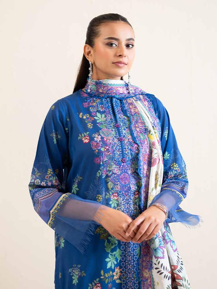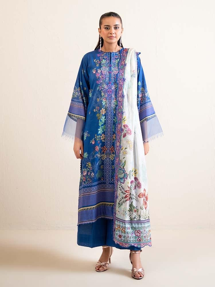 Pakistani Hania by Binaas Unstitched Three Piece - Sapphire Blue