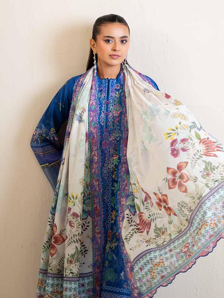Dupatta: An ethereal Off-White Digital Printed Pure Lawn dupatta, finished with signature Cut-Work Embroidery along the edges.