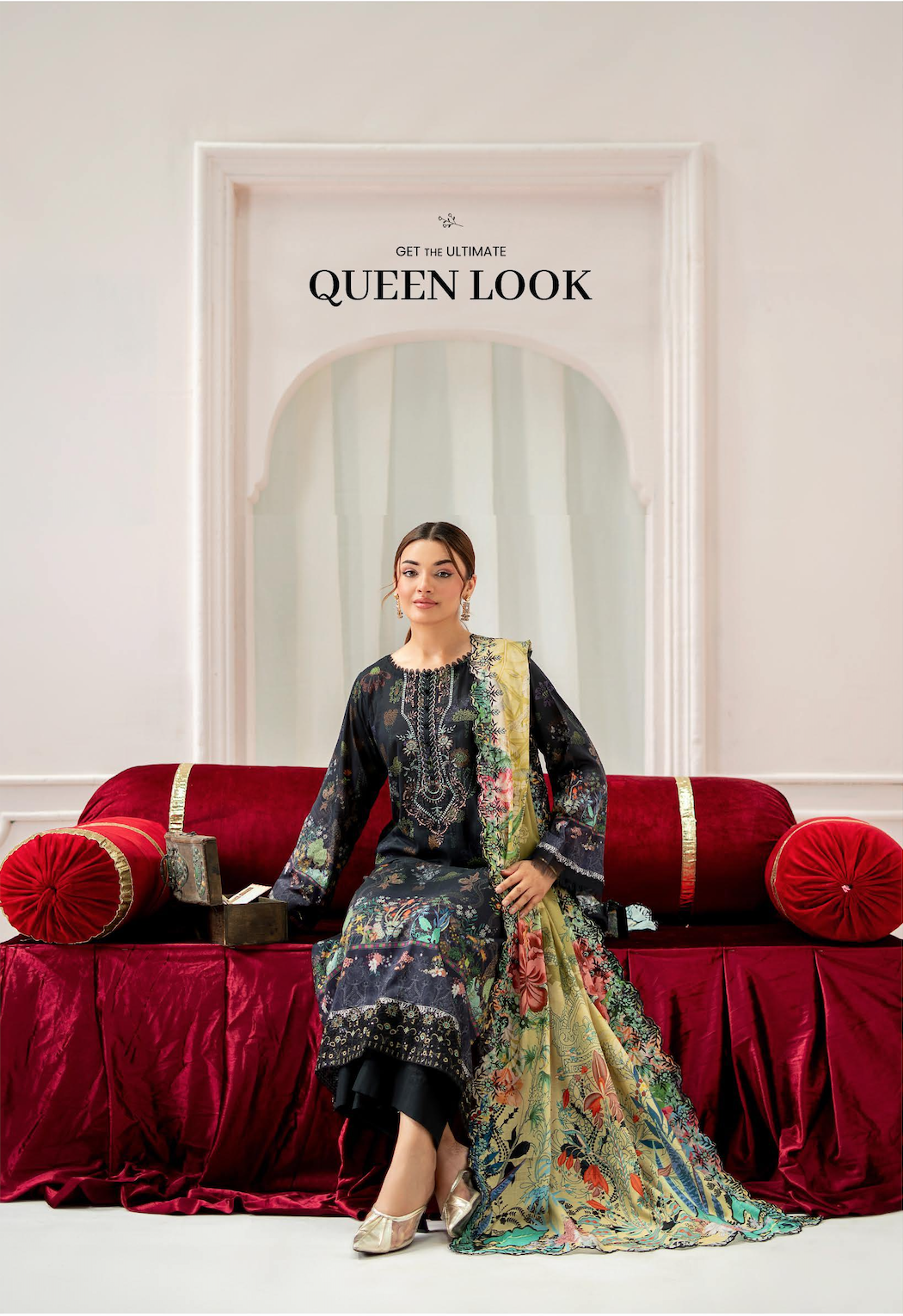 Dupatta: A standout Digital Printed Zari Lawn dupatta, elevated with a sophisticated Jacquard Border that adds a shimmering, regal touch.