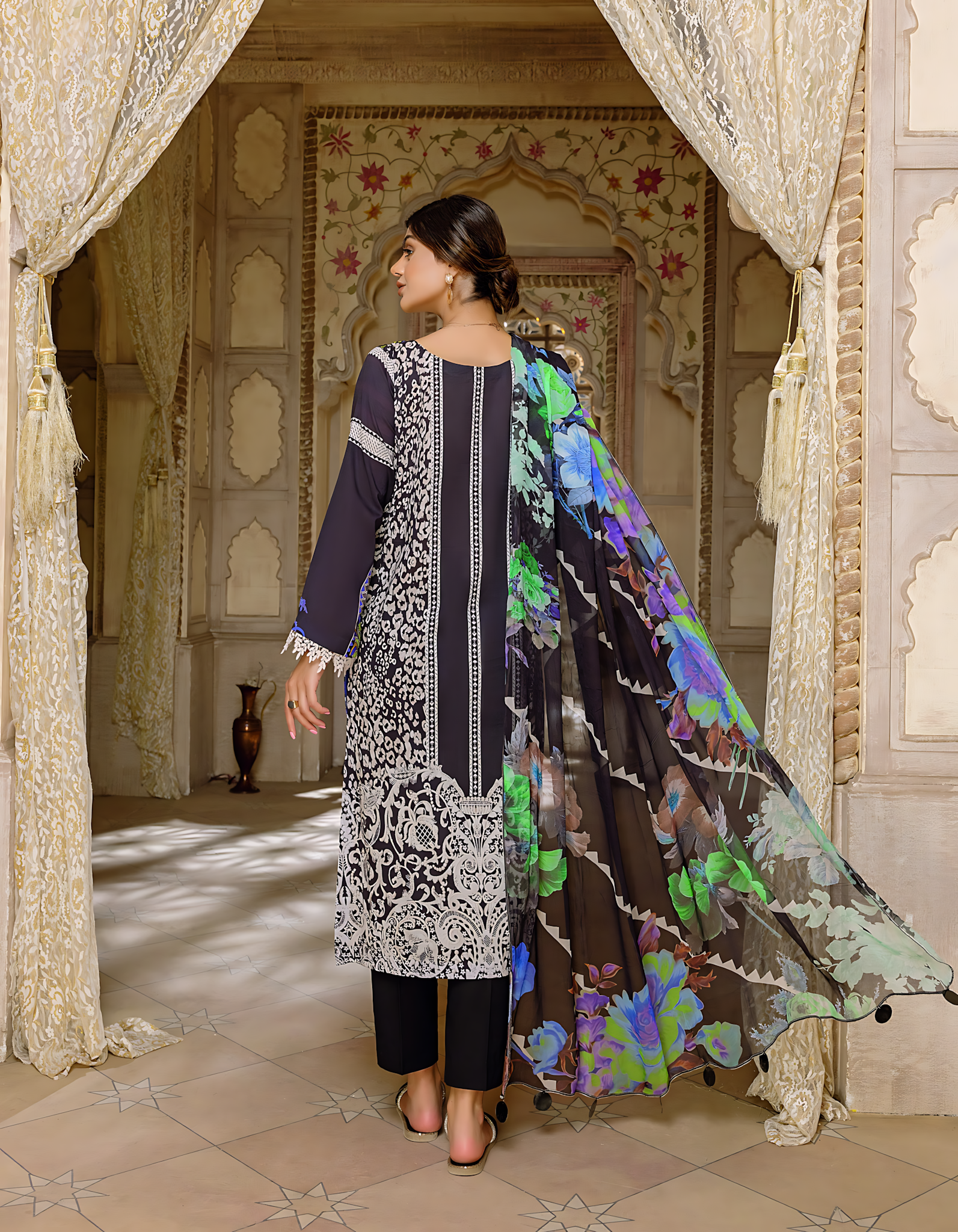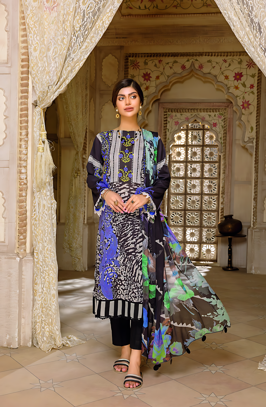 Step into timeless elegance with this beautifully designed printed lawn outfit, featuring intricate patterns and a graceful chiffon dupatta that flows effortlessly. Perfect for festive gatherings or casual chic days, it blends comfort with sophisticated style.
