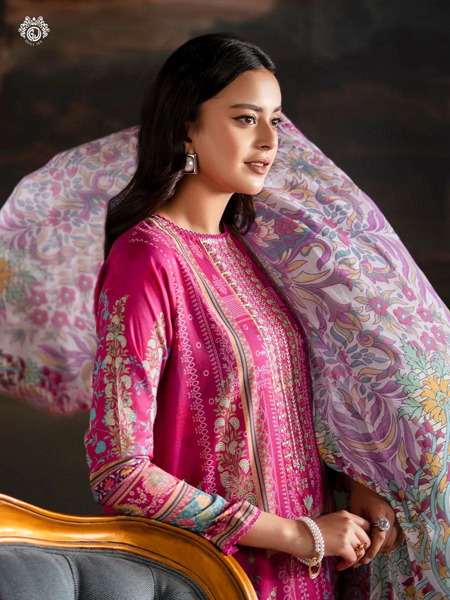 Pakistani Sorrel by Gulljee Unstitched Three Piece - Magenta Hue