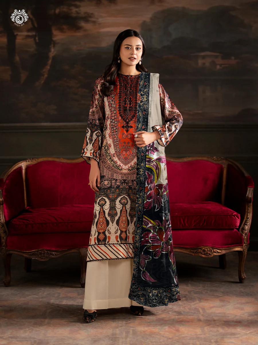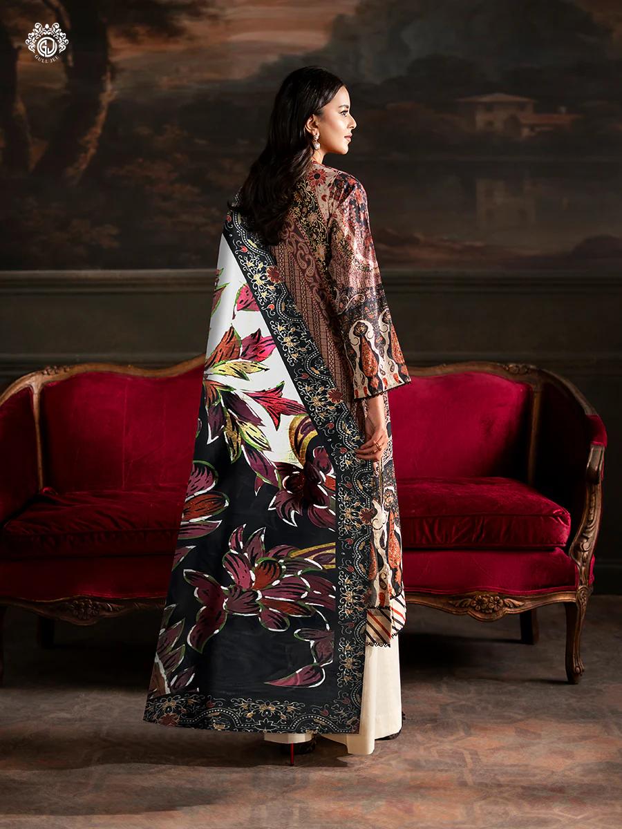 Pakistani Sorrel by Gulljee Unstitched Three Piece - Rust Maroon x Cream