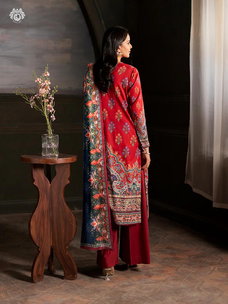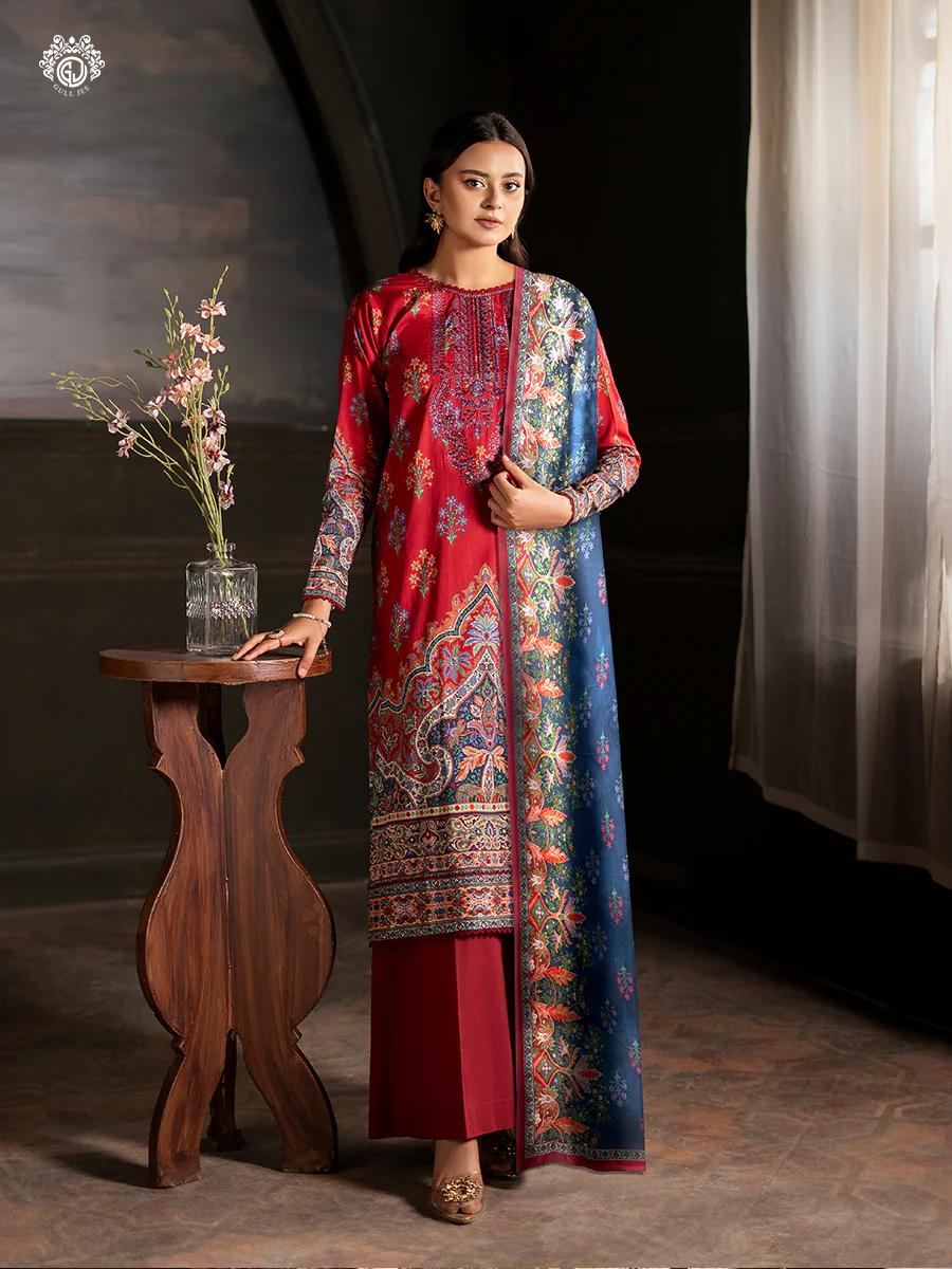 Pakistani Sorrel by Gulljee Unstitched Three Piece - Sunset Red x Blue