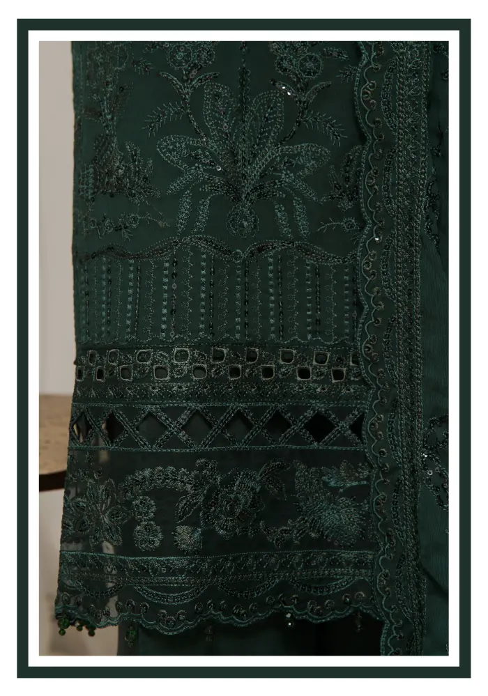 Made with luxury chiffon, beautifully enhanced with elegant embroidery, adding a graceful and flowing touch to the outfit.
