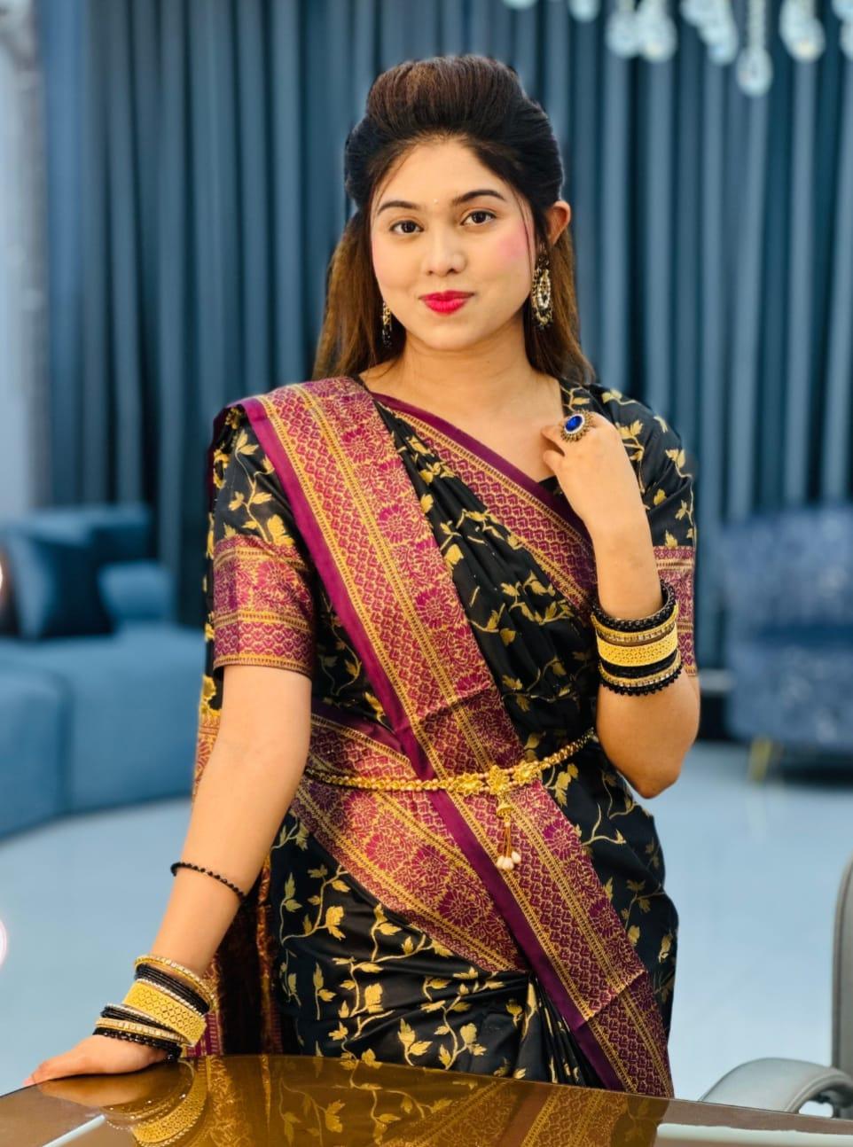 Premium Quality Kashmiri Lata Katan Saree - Black