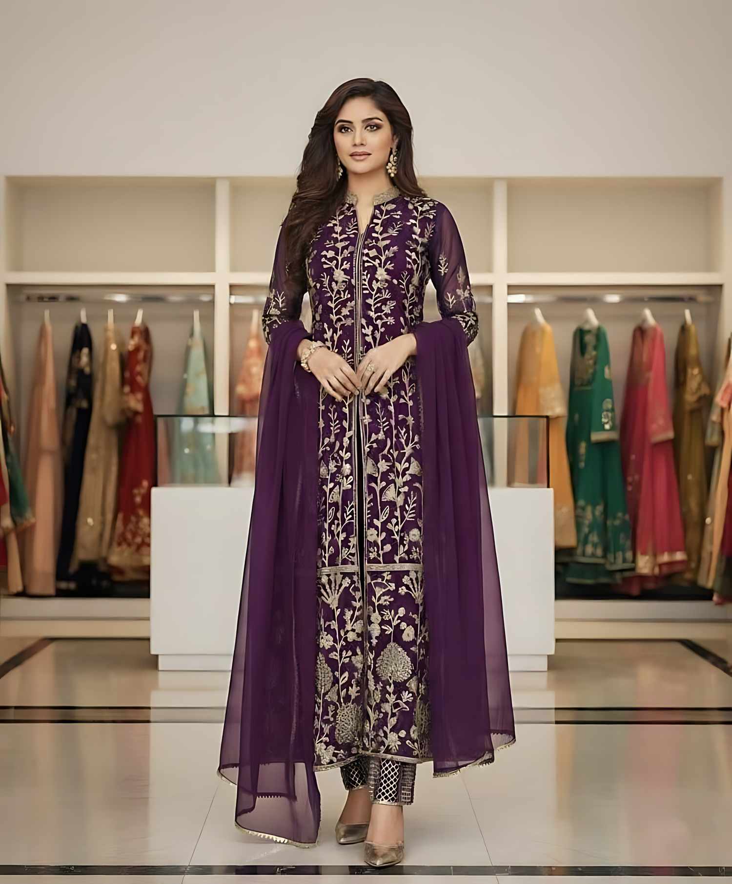 Step into elegance with this stunning ready-made georgette party dress designed to give you a graceful and eye-catching look. The beautiful embroidery work combined with a flowing silhouette makes it perfect for weddings, parties, and special occasions. Stylish, comfortable, and effortlessly classy.