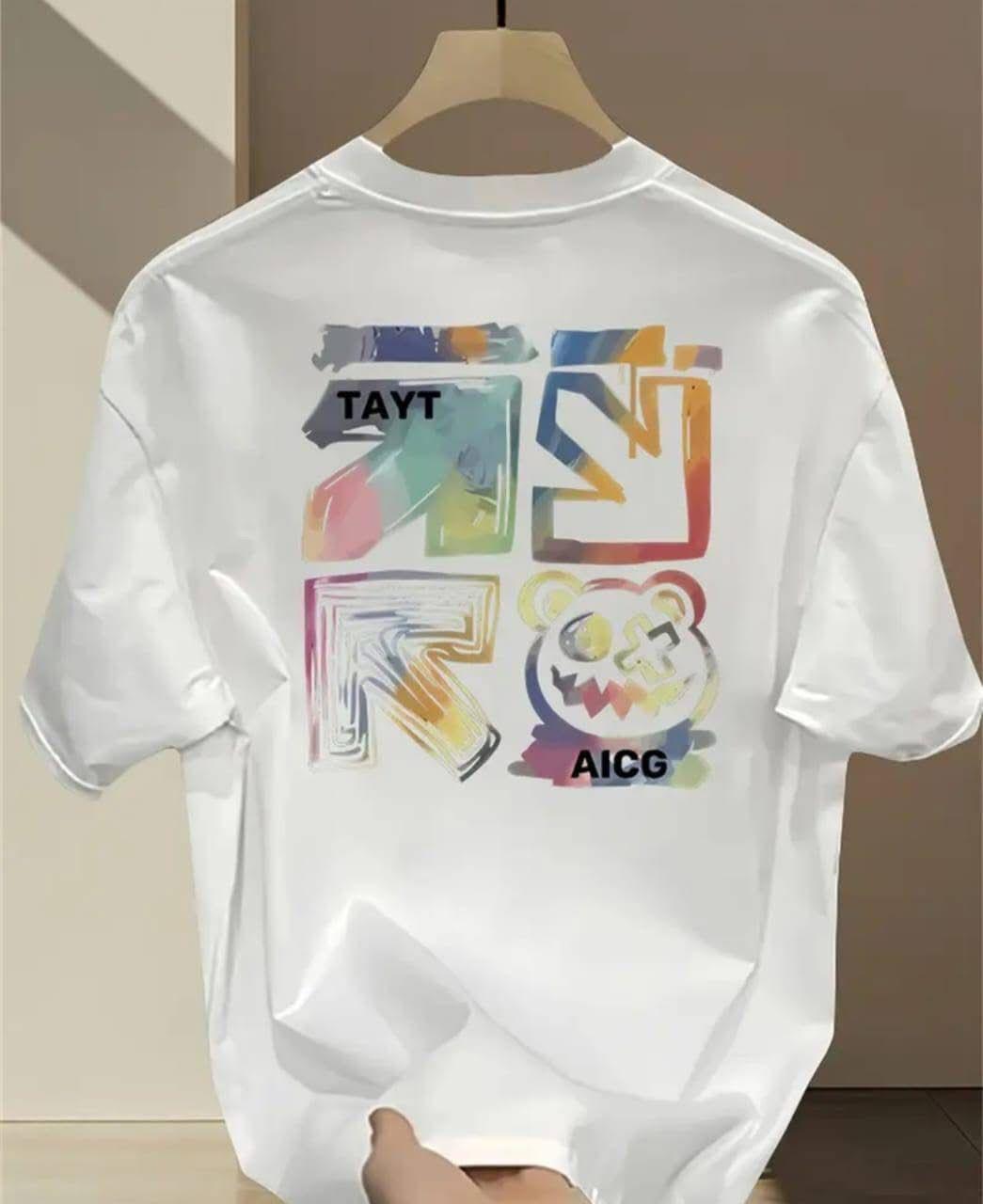 Design & Style: Eye-catching multicolor graffiti artwork on both front and back with a trendy drop shoulder cut for a smart and cool look.