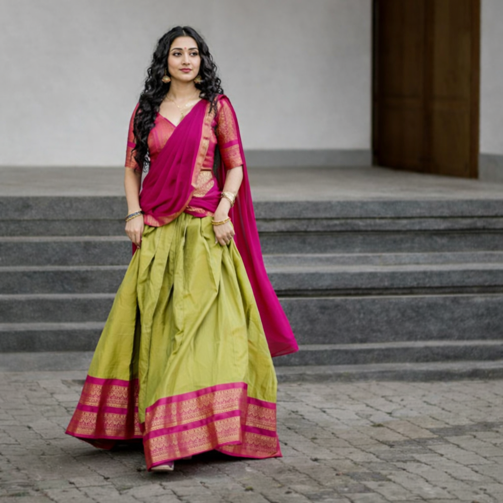 South Indian Lehenga for Women - Olive Green