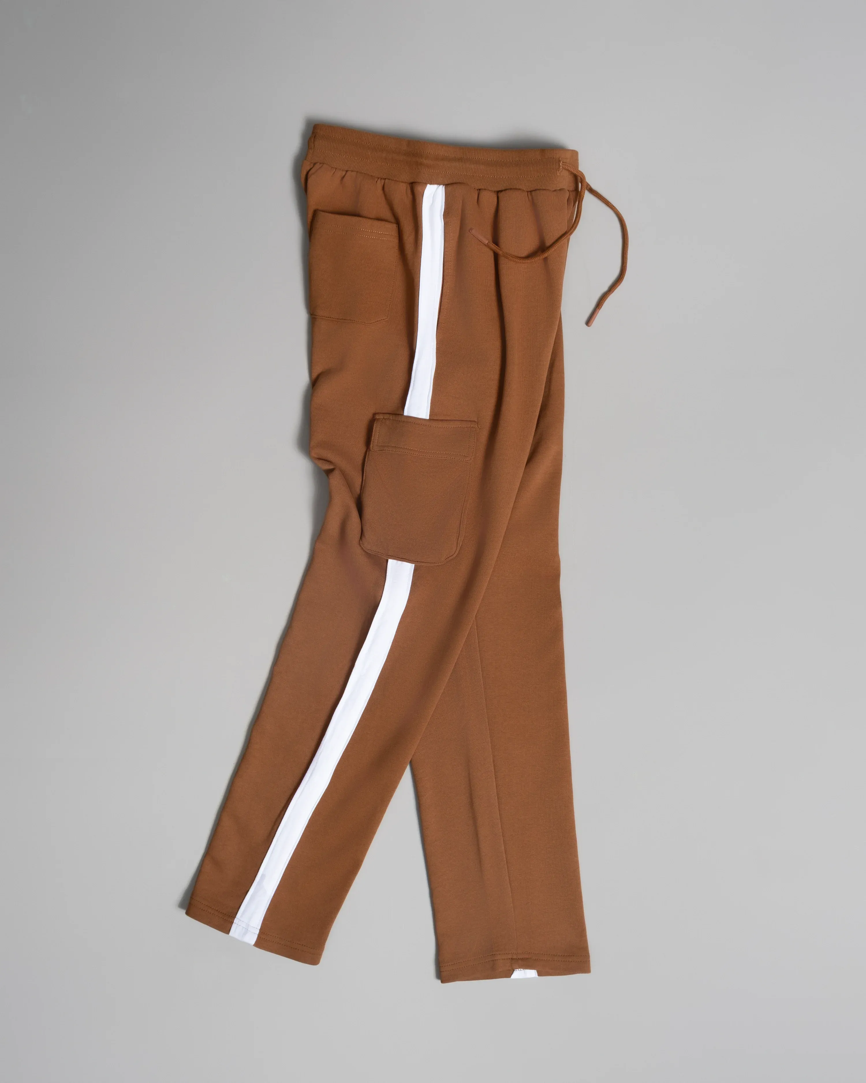 Designed for comfort without losing edge, these joggers feature a clean, tapered fit with bold white side stripes for that elevated street look. Made from a soft cotton-blend knit, they’ve got a slight stretch and a breathable feel, perfect for everyday wear or light movement. The oversized patch pocket adds a bit of utility, while the elastic waist and drawstring keep things adjustable.
