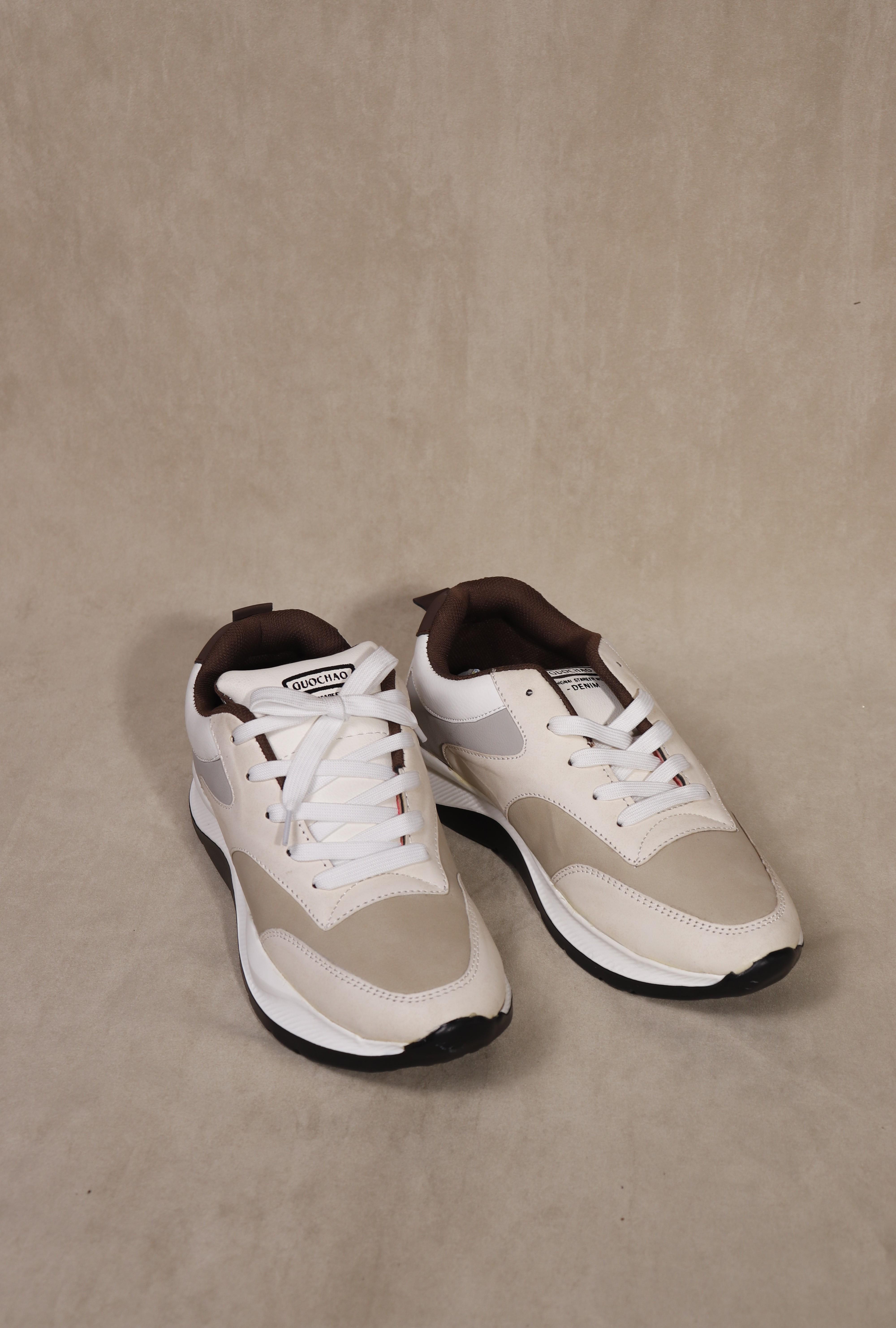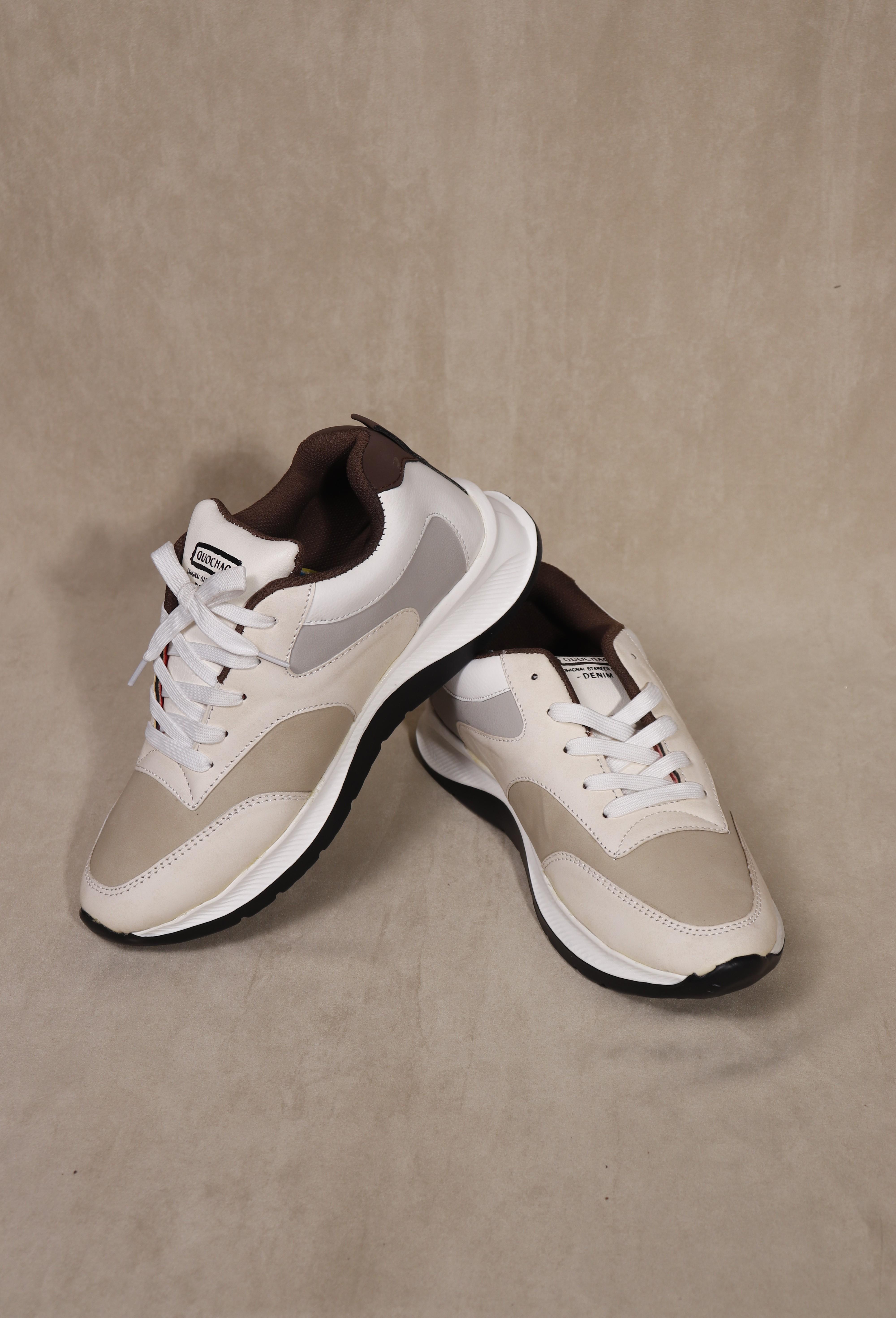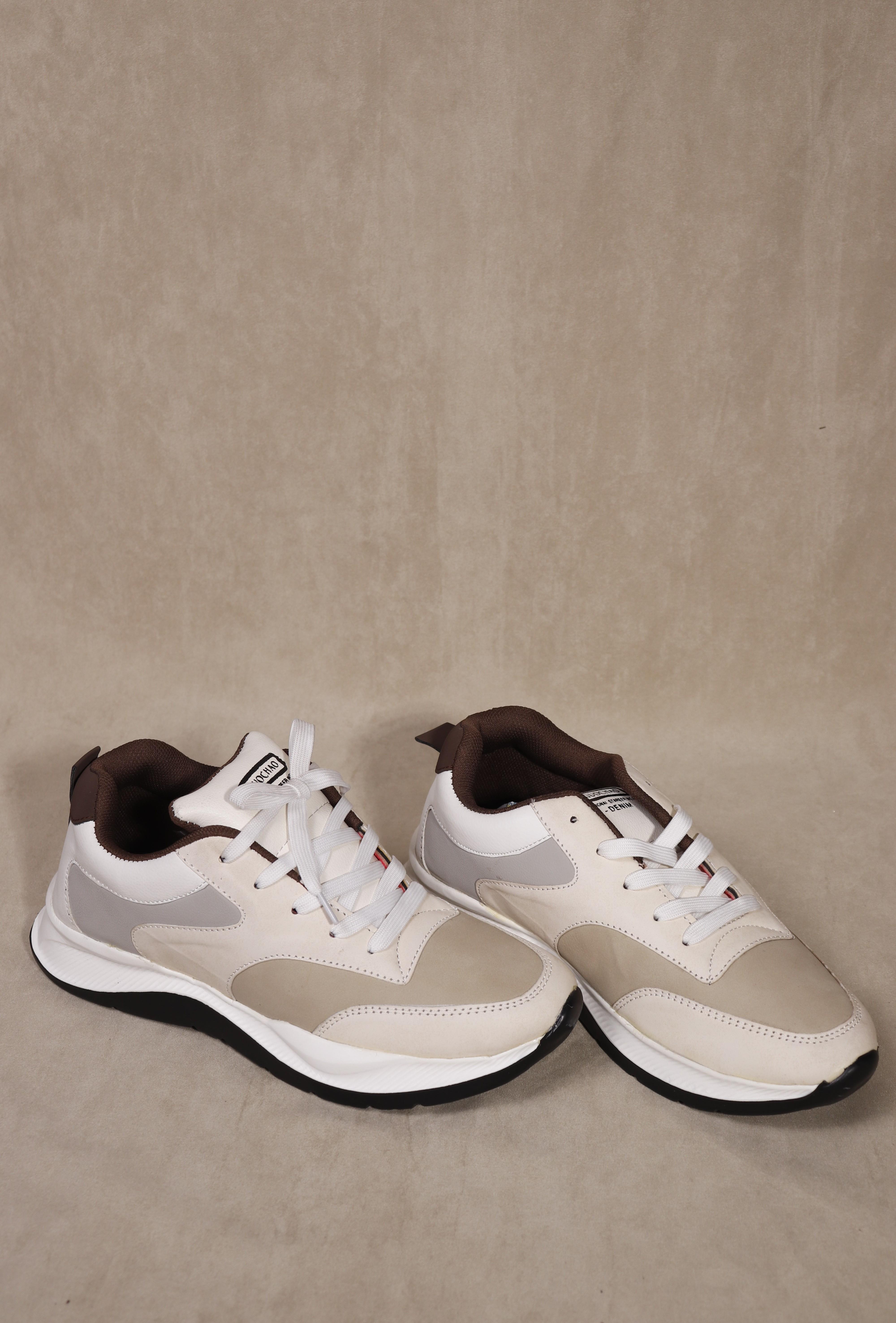 TreadVibe Exclusive Rubber Sole Lace Up Sneaker for Men - Beige X White