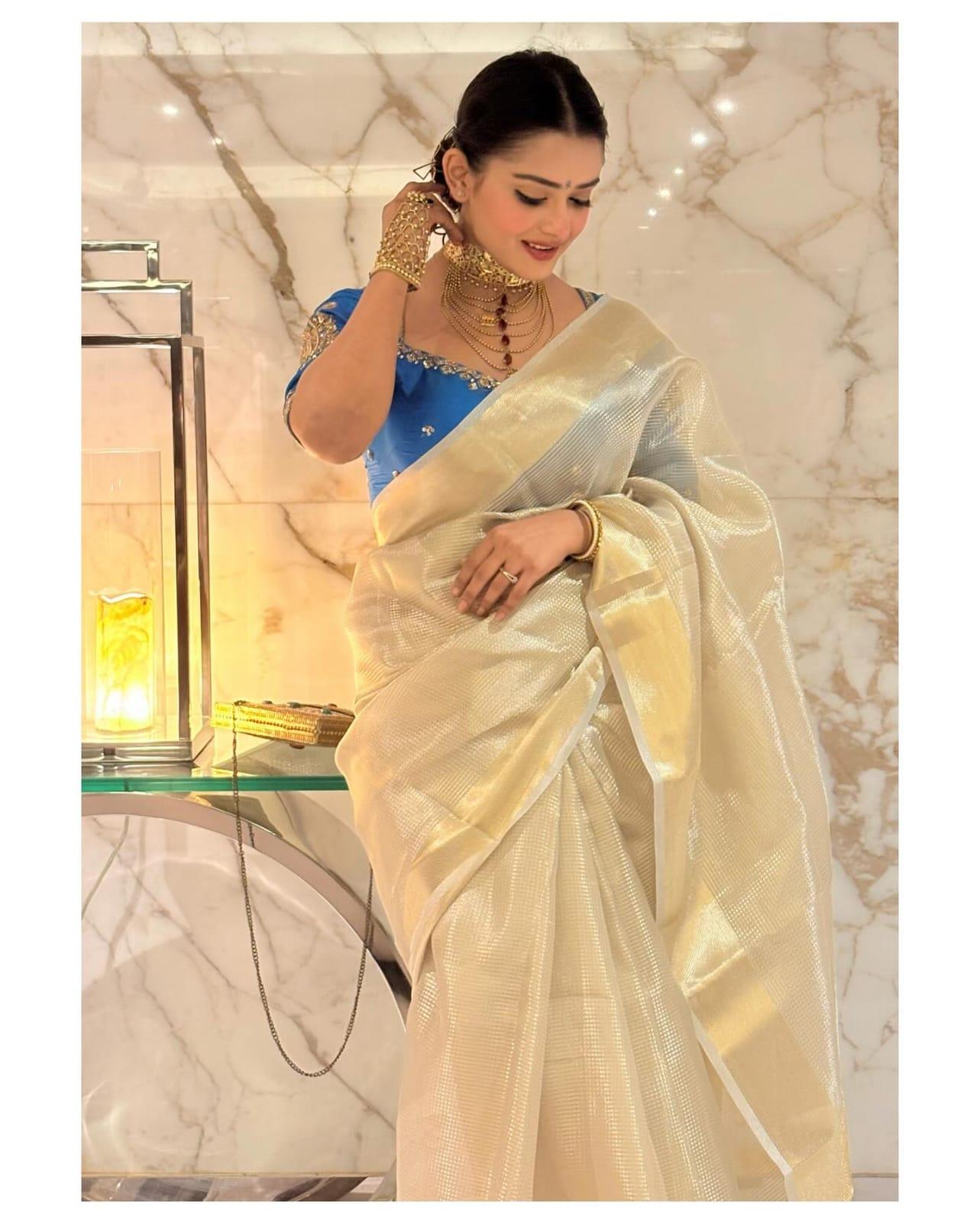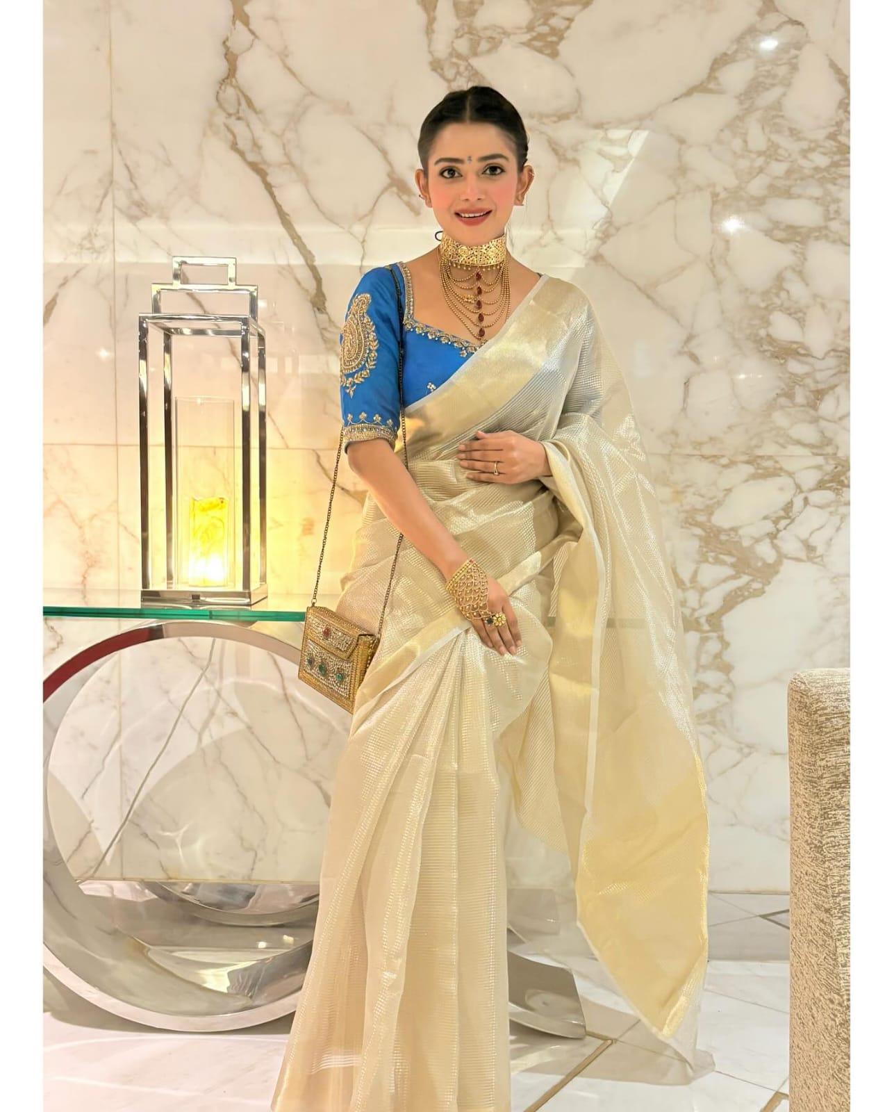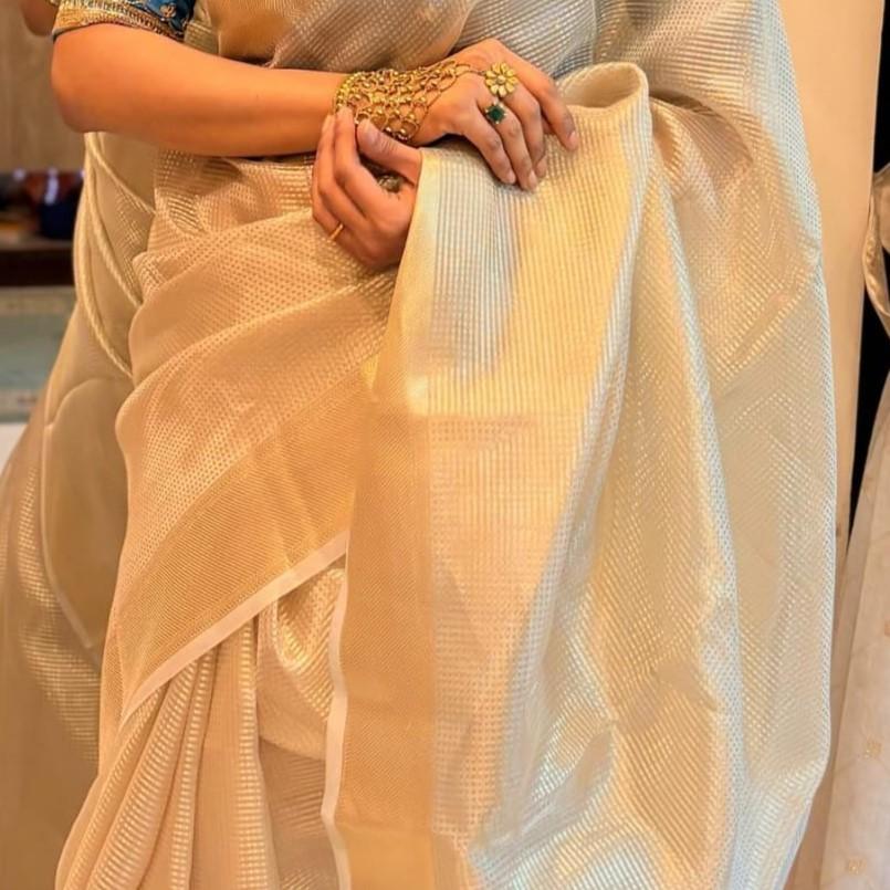 Fabric: Crafted from luxurious soft semi Kanjivaram tissue silk, offering a lightweight feel with a rich, elegant drape.