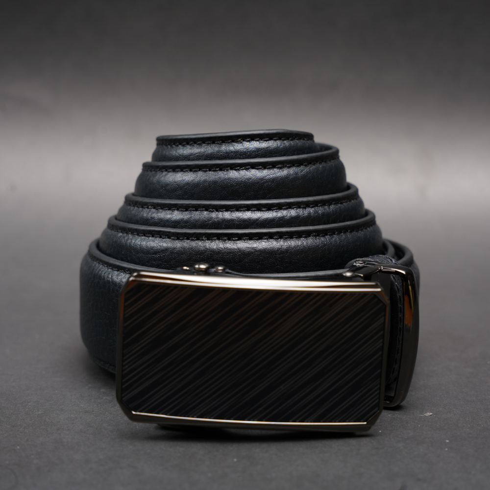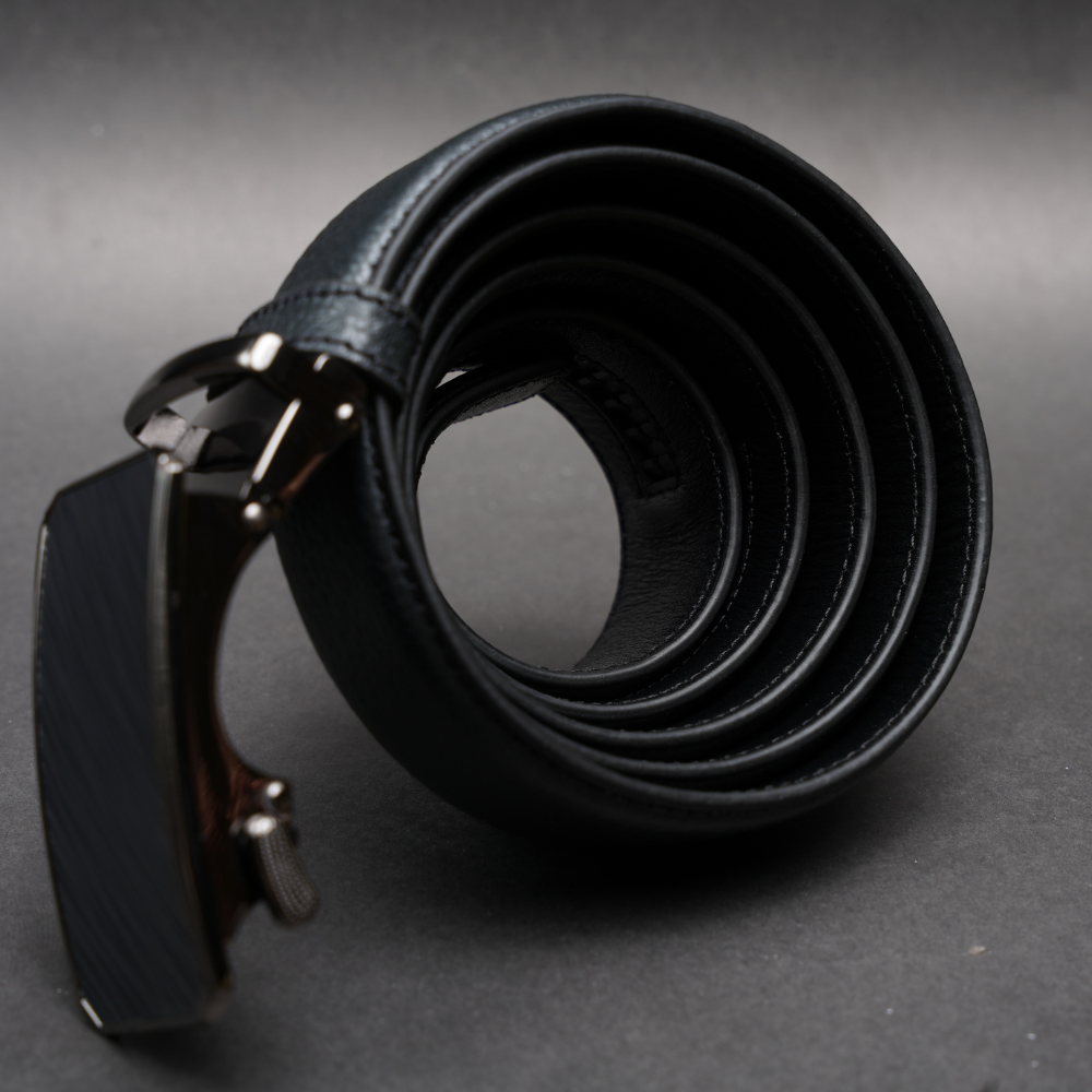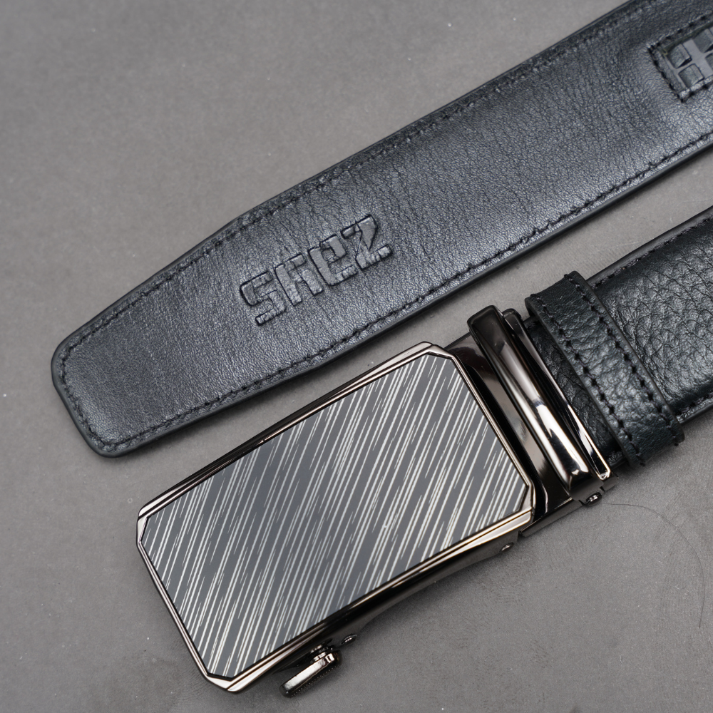 Zays Handcrafted Imported Full Grain Cowhide Leather Auto Gear Belt for Men - Black