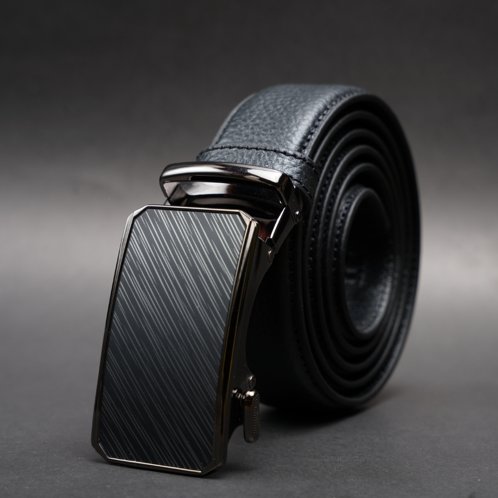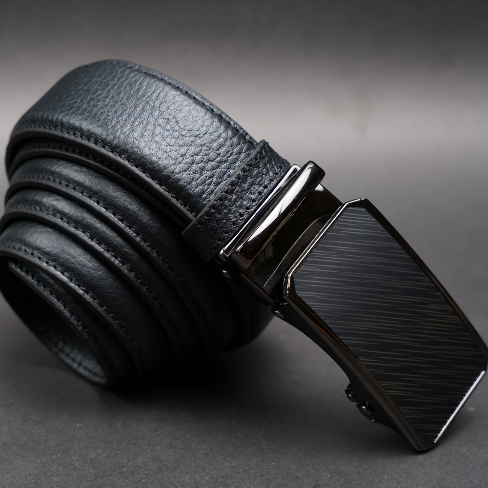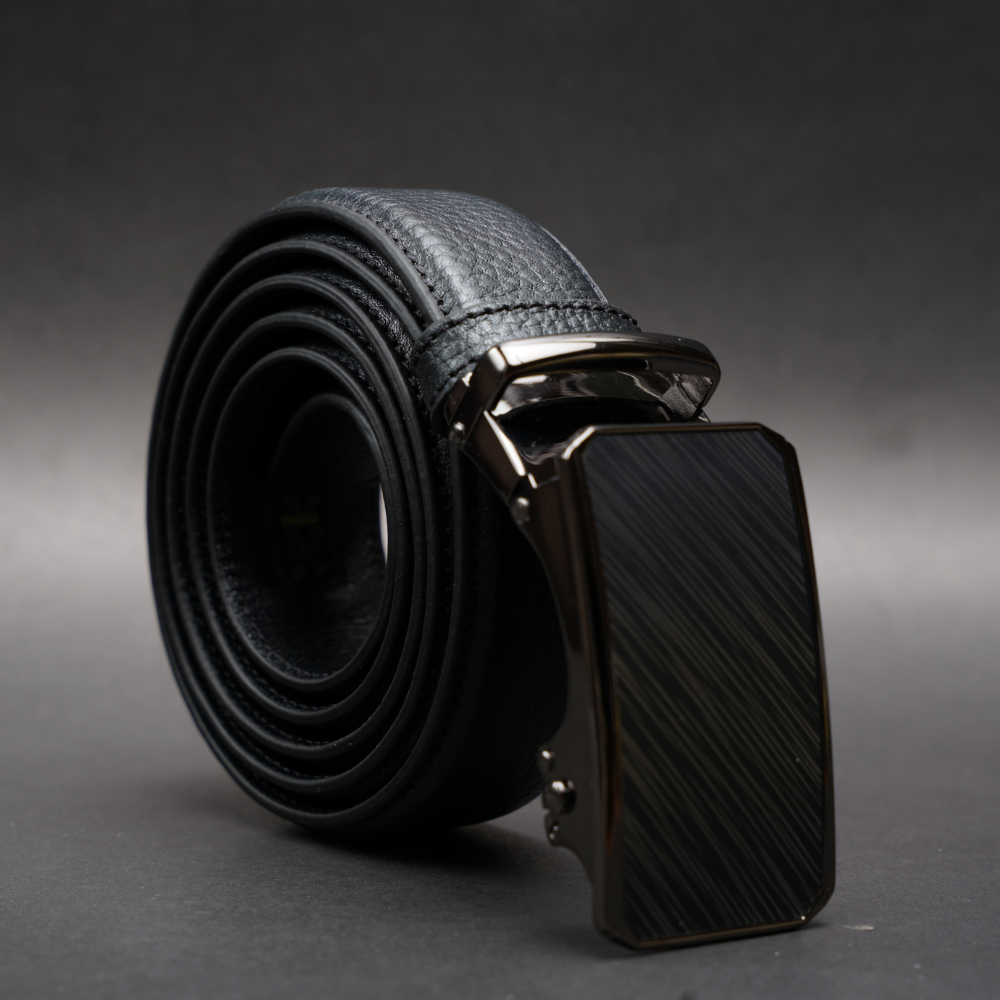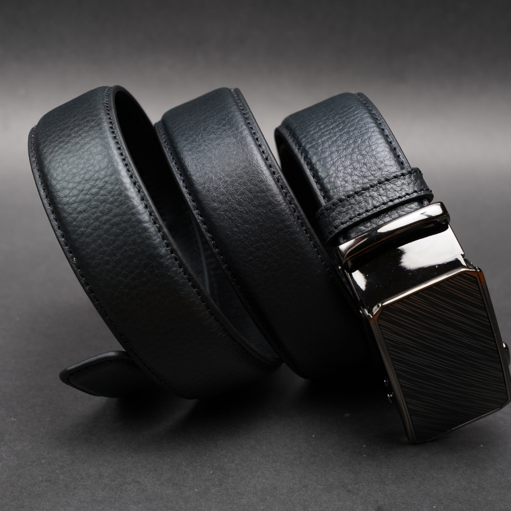 Zays Handcrafted Imported Full Grain Cowhide Leather Auto Gear Belt for Men - Black